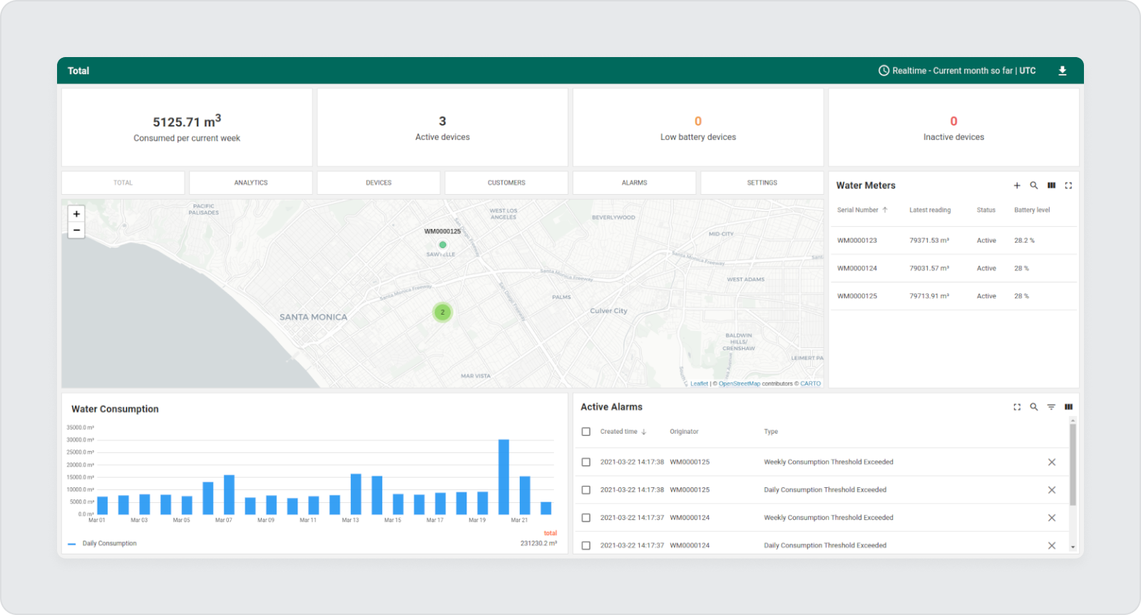 - 用户仪表板:仪表板是所有数据得以体现的地方。因此,农民可以获得显示温度、湿度、水位等的实时图表和小部件。此外,自动电子邮件警报可让用户随时了解重要事件。