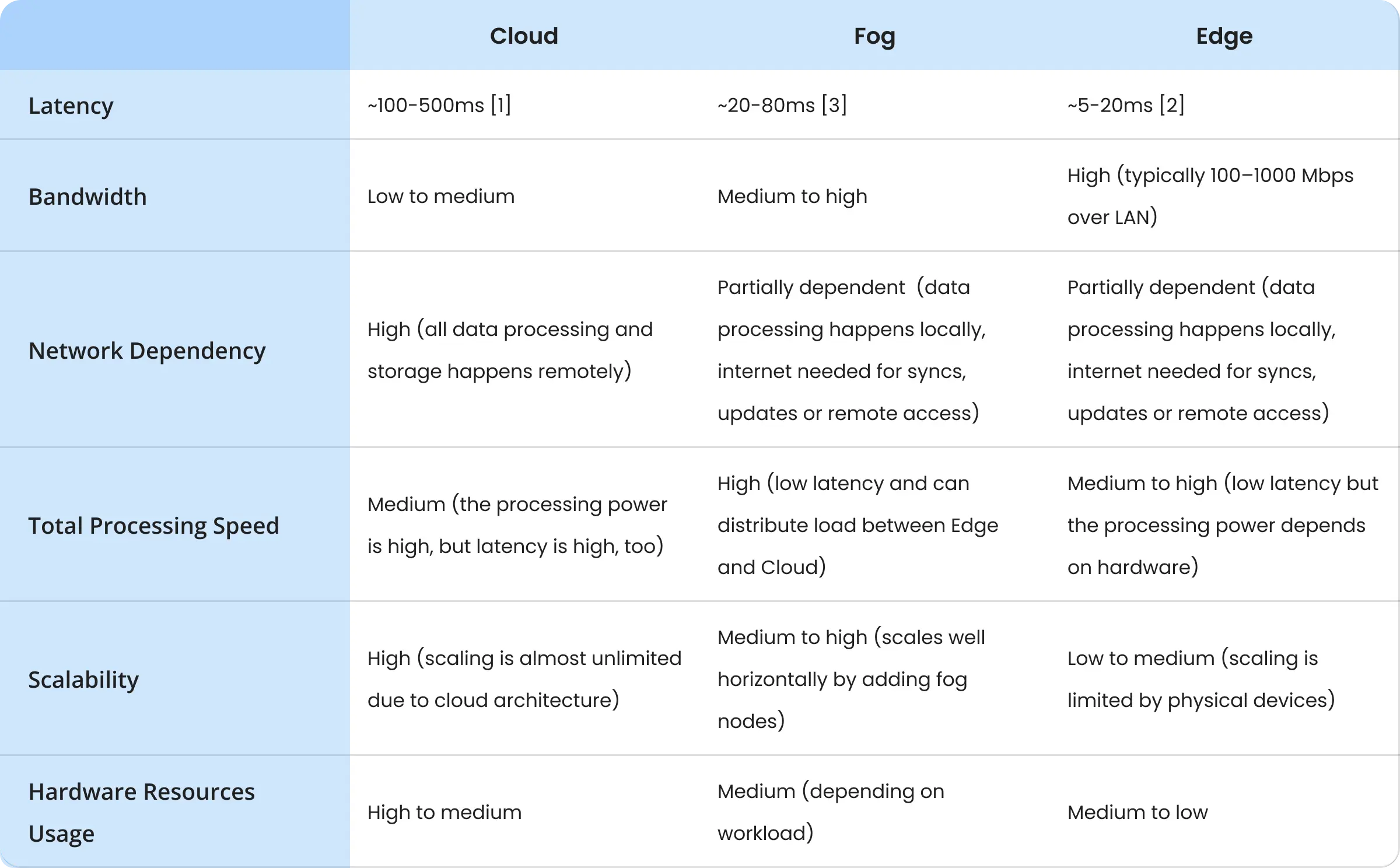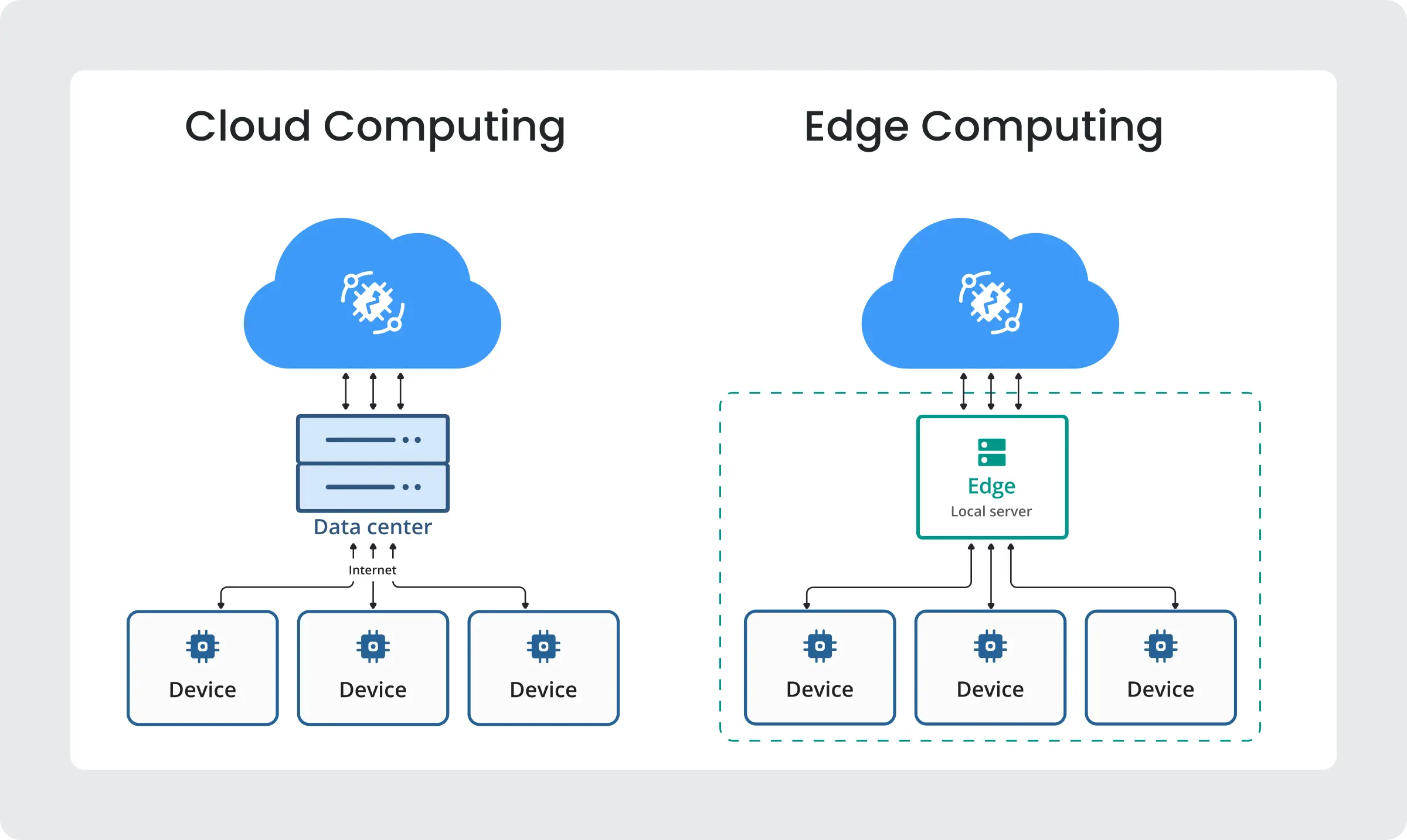 - 边缘在本地处理数据,优先考虑速度和自主性。