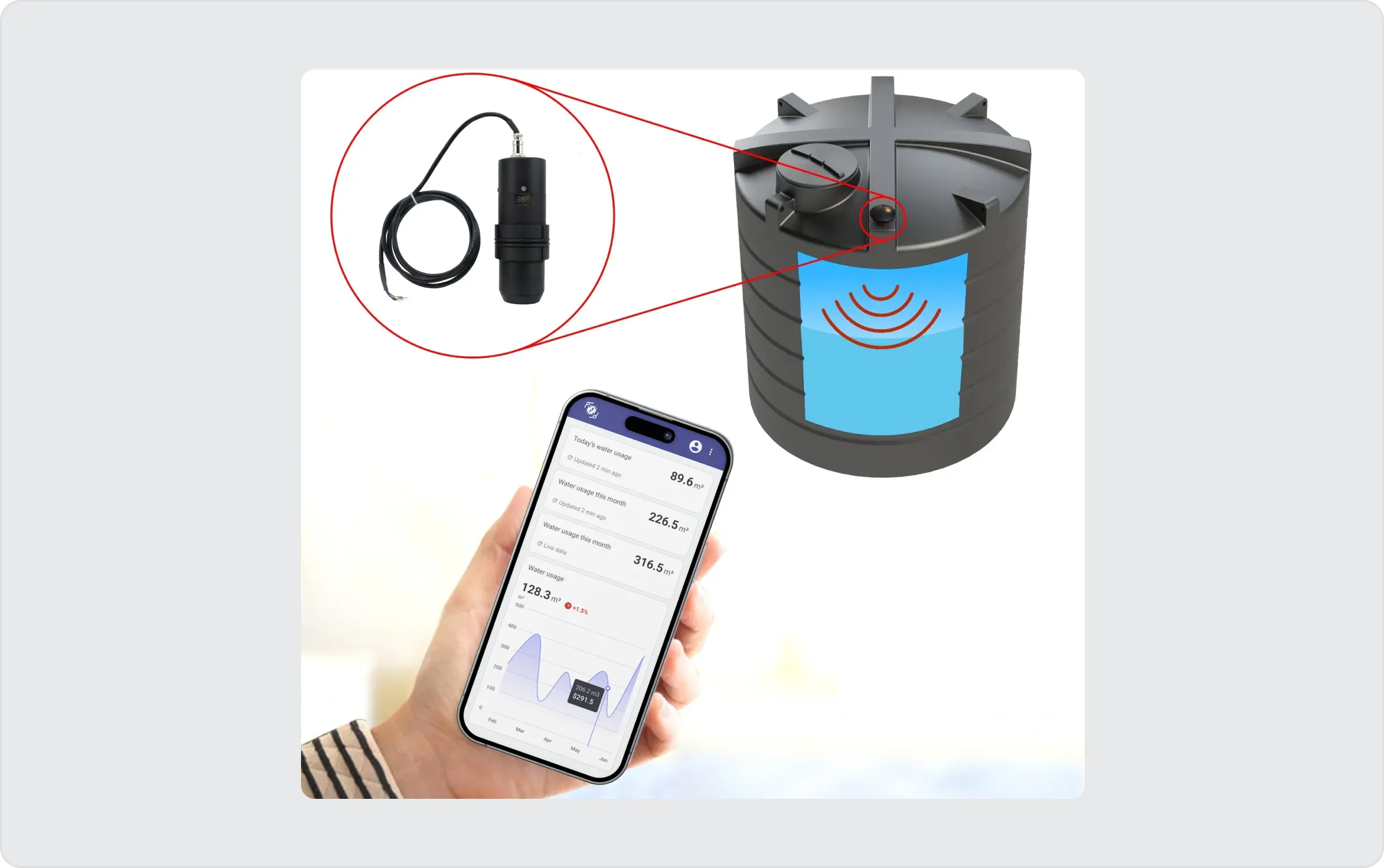 安装后,传感器可以检查罐中的液体量。它们的工作原理是向液体表面发射信号(超声波传感器的声波或雷达传感器的电磁波),并测量这些信号反弹所需的时间。此方法有助于计算罐内的液位。