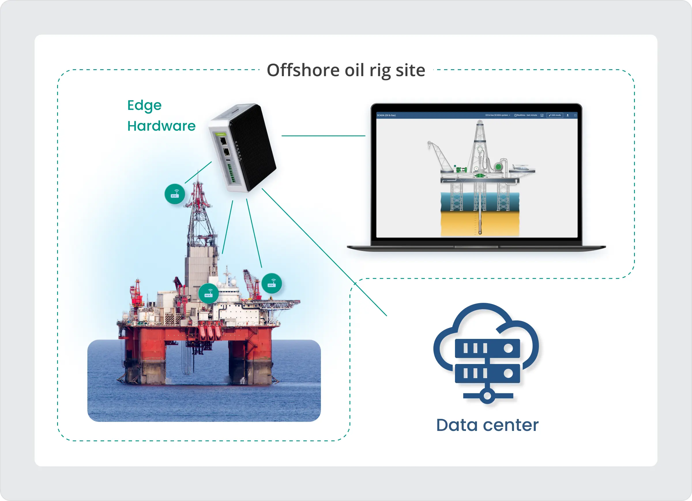物联网技术 例如 监控与数据采集系统和边缘计算 正在彻底改变石油和天然气行业。它们提供了广泛的好处,包括远程资产管理。本地数据处理和实时监控功能有助于降低维护和运营成本并减少停机时间,同时提高人员响应时间、效率和对远程石油钻井平台的整体控制。