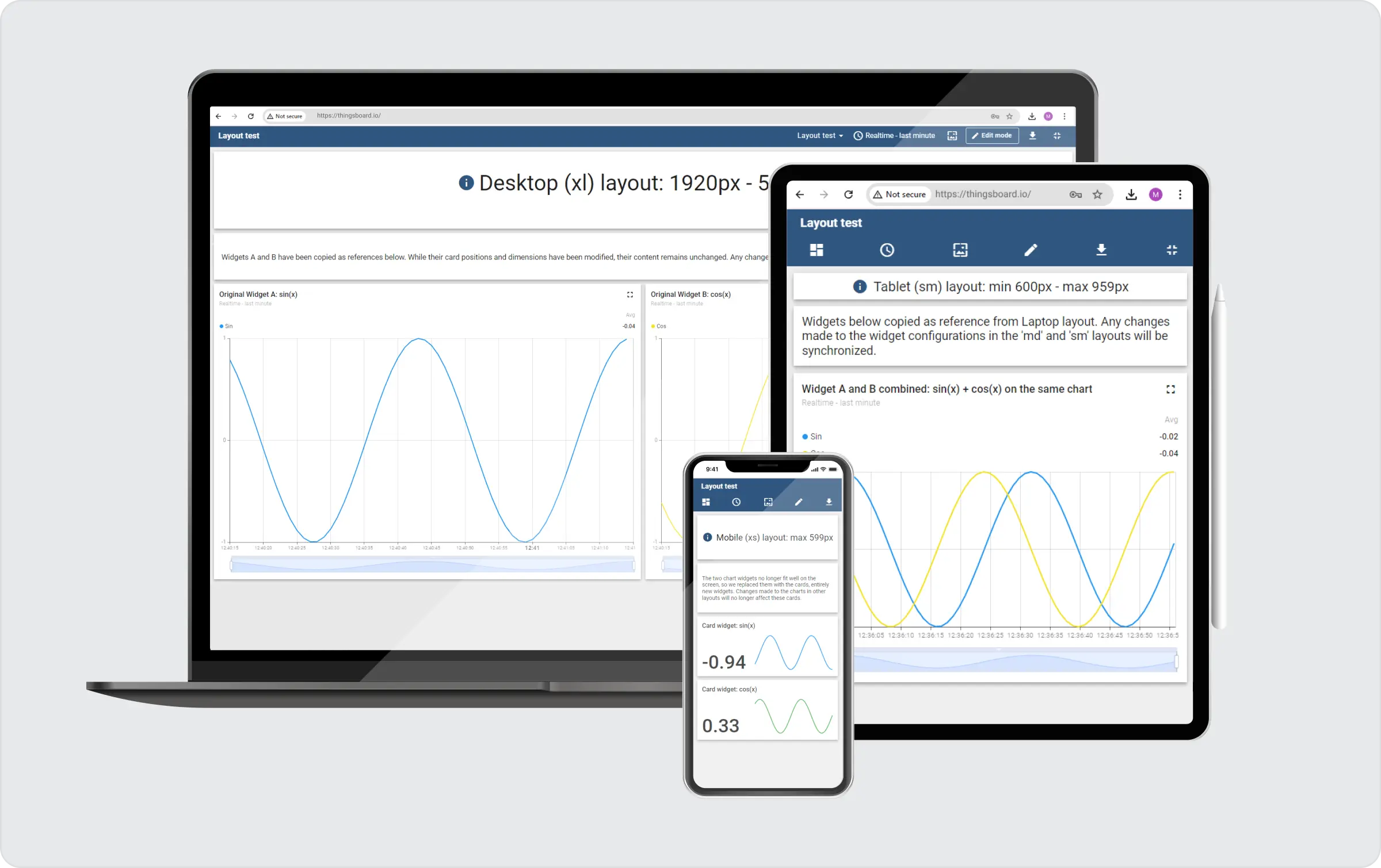我们已经扩展了 布局设置 对于仪表板并根据不同的断点启用其配置: 默认, 桌面(XL), 台式机(lg), 笔记本电脑(MD), 平板电脑(小), 和手机(xs)。每个断点都对应于特定的屏幕分辨率范围,有助于无缝调整仪表板的外观以适应每个断点。根据屏幕尺寸,单个仪表板可能会显示不同的小部件,因为它们的排列和内容适应会发生变化以优化设计。但是,无论您使用哪种设备屏幕尺寸,仪表板上的内容都将同样具有可扩展性和可感知性。此外,您可以根据另一布局的现有内容轻松创建和自定义新布局。这种灵活性确保了所有设备上一致且优化的用户体验。