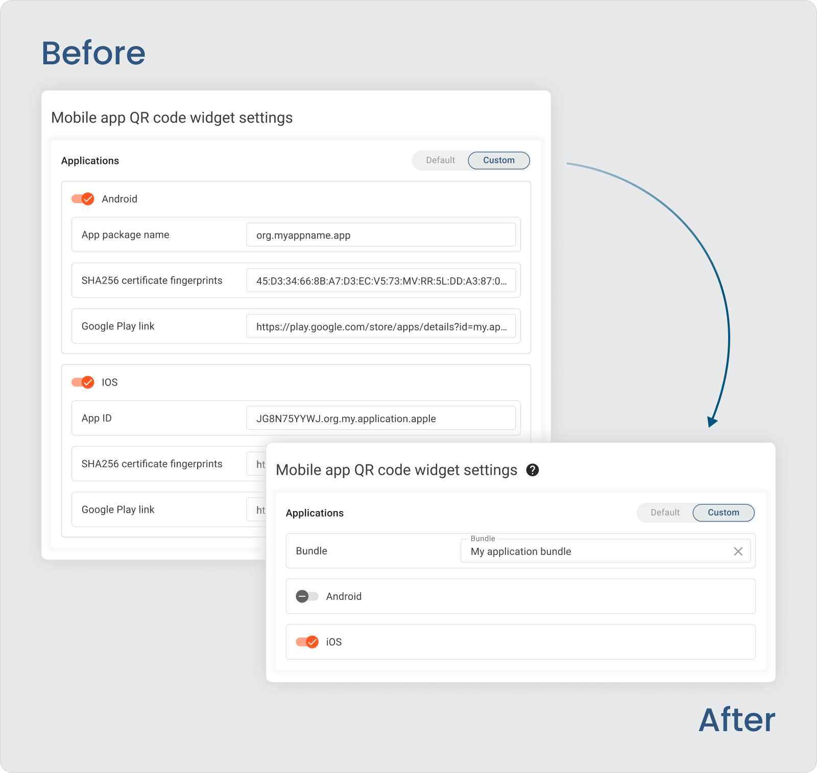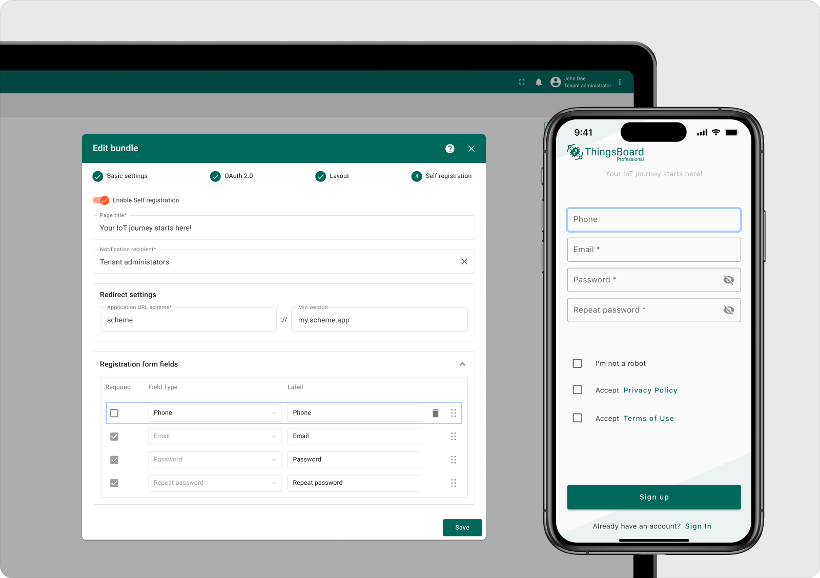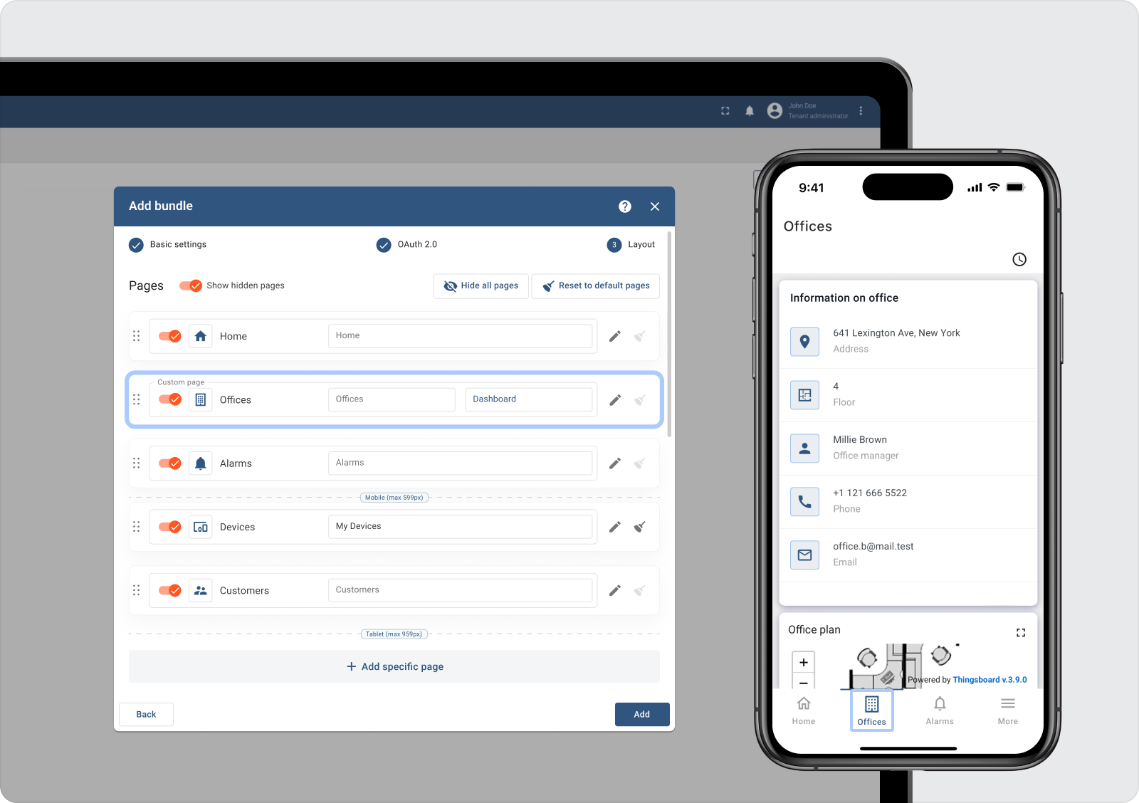 用户现在可以使用简单的 UI 表单轻松定制他们的移动应用程序。自定义选项包括设置 OAuth 2.0 客户并安排 布局 移动应用程序页面。专业版还提供了 自助注册 设置功能,允许直接通过移动应用程序设置新客户。这些设置适用于 Android 和 iOS 应用程序,这些应用程序现在组织为 应用程序包。此外,您可以实时修改这些设置,而无需发布新版本的应用程序。