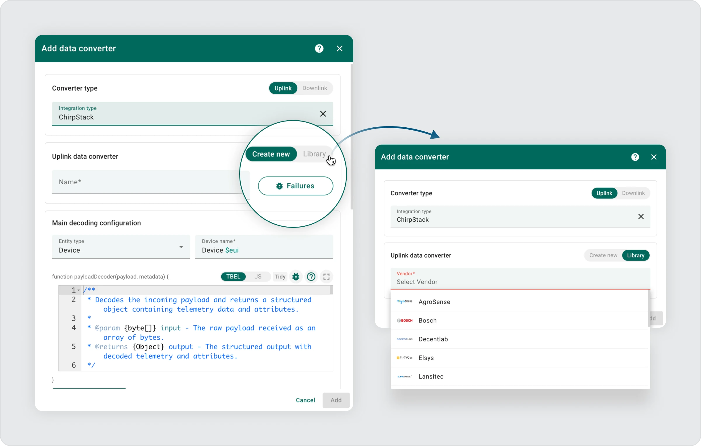 以前,只能在集成创建期间访问该库。现在,您可以通过菜单独立创建转换器,并在多个集成中重复使用它们。