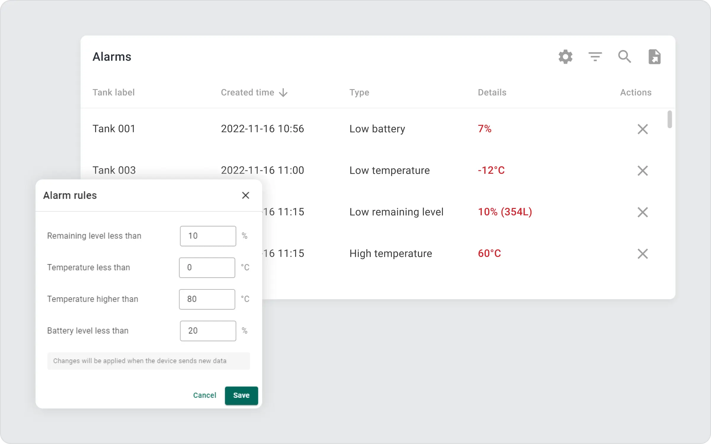 该平台还允许根据需求和偏好定制警报——它可以通知温度、压力的变化或储罐中的任何其他变化。