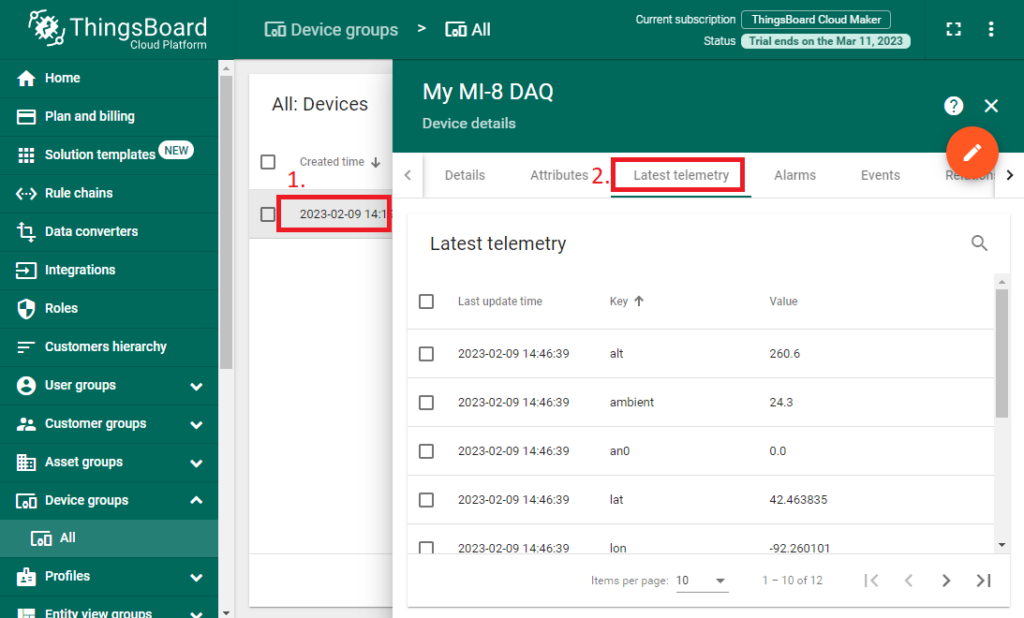 - 点击刚与MI-8关联的设备,进入 Latest Telemetry 选项卡。