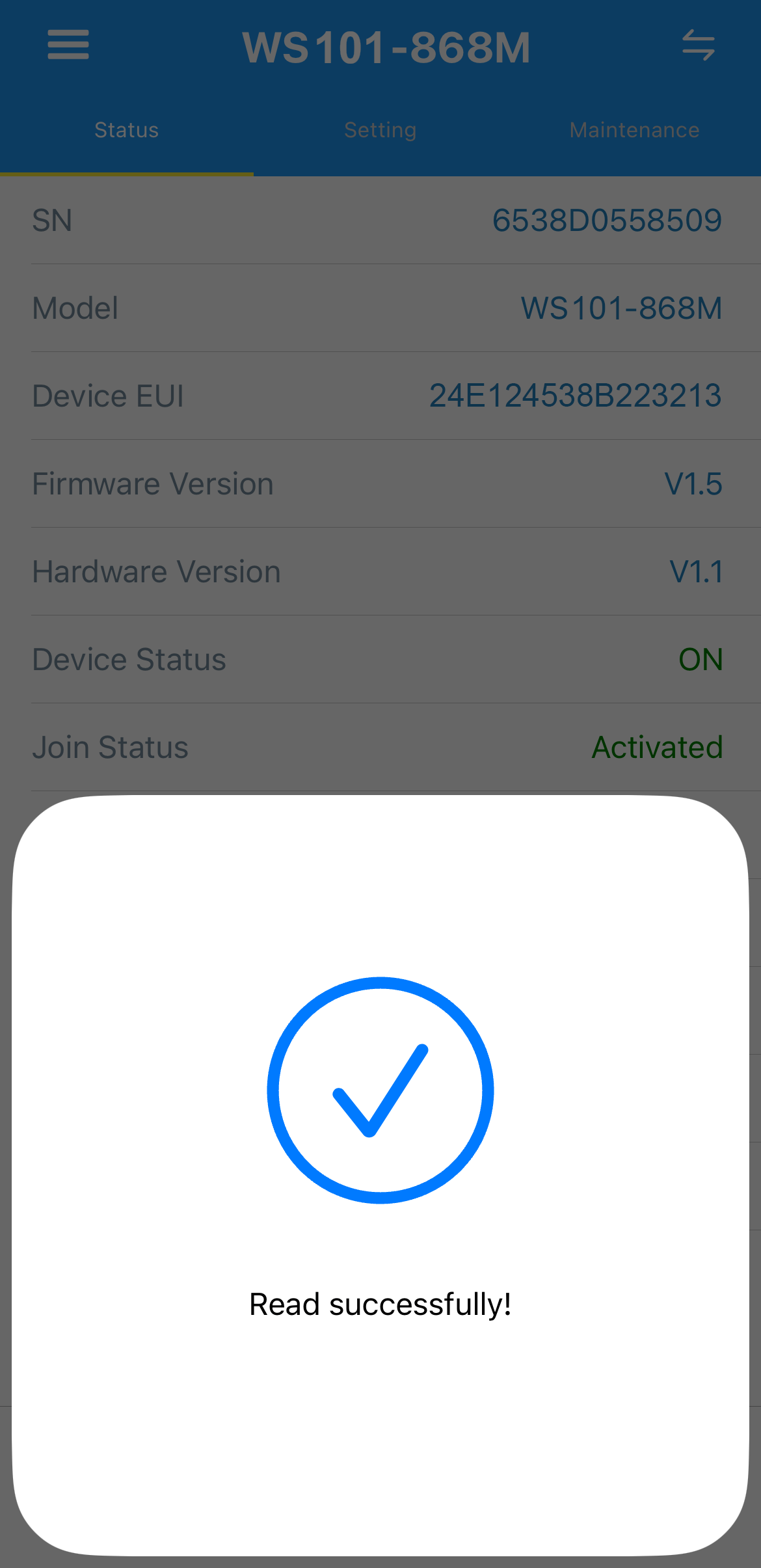 点击 NFC Read 按钮,将智能手机靠近设备。