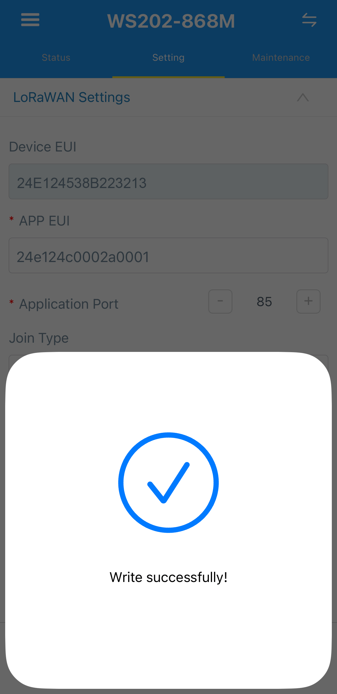 - Device EUI - 设备标识符