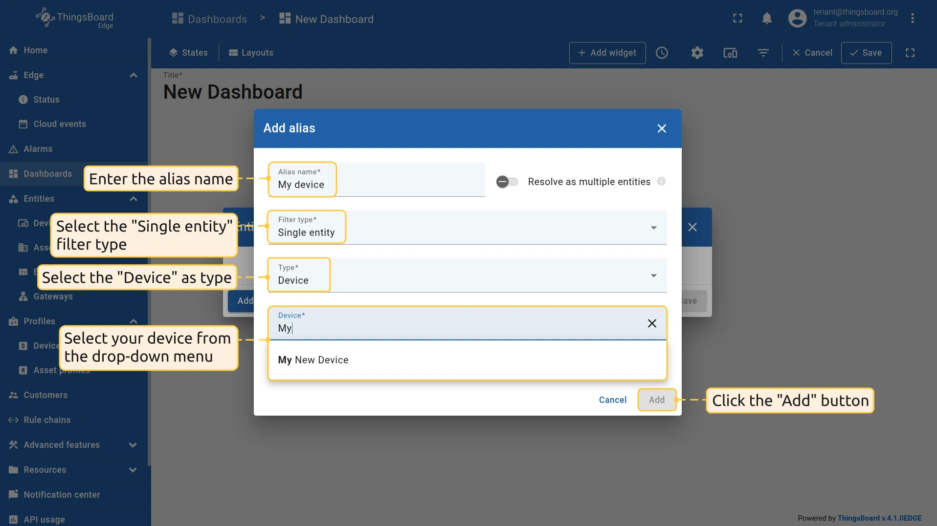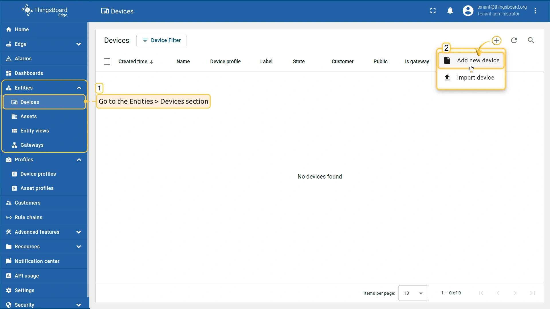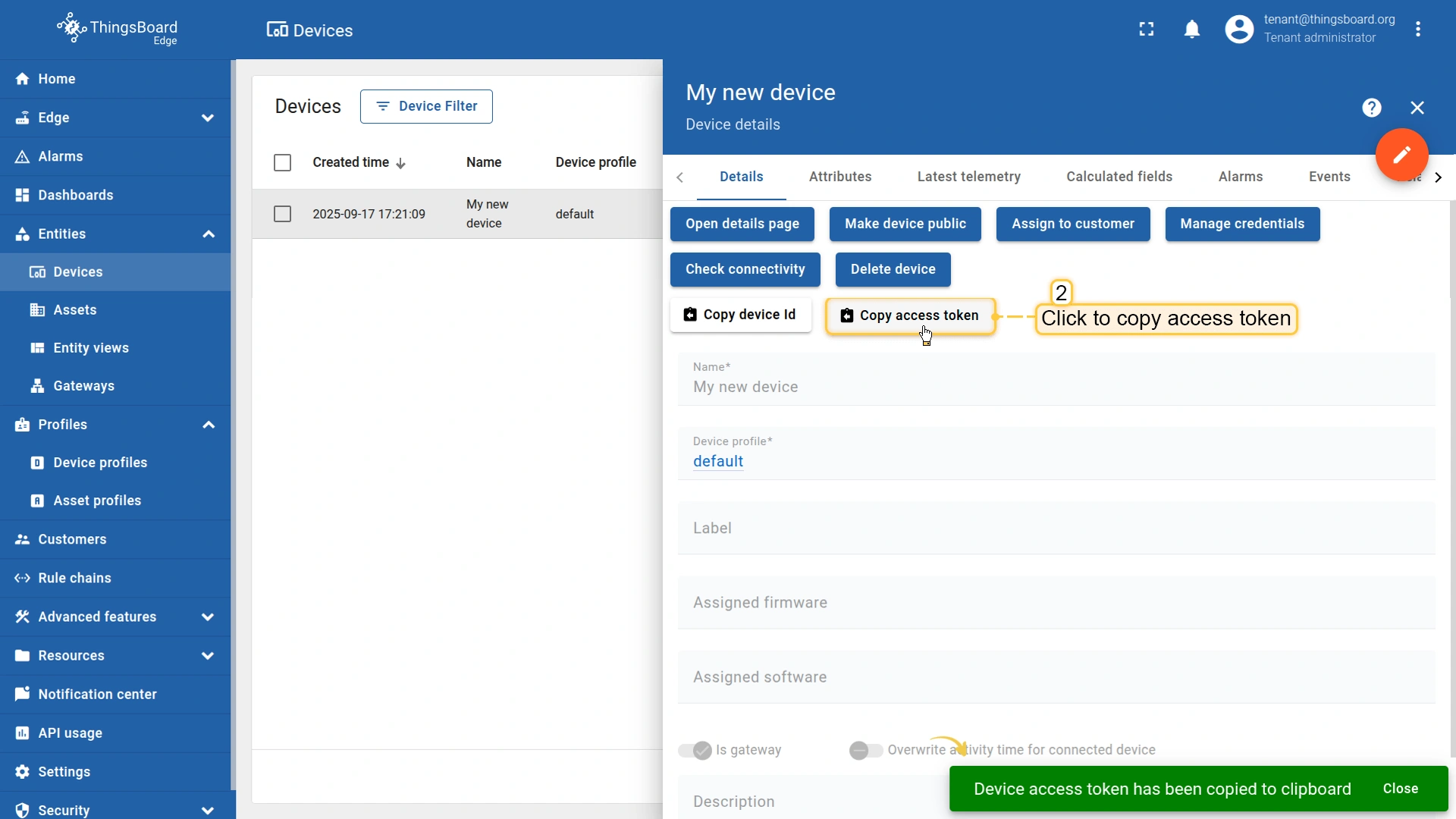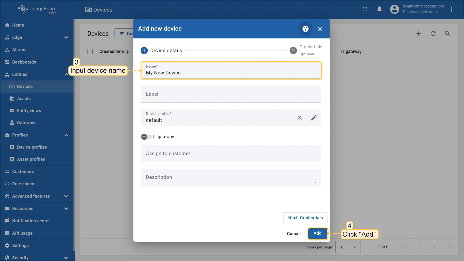 在ThingsBoard Edge中创建设备