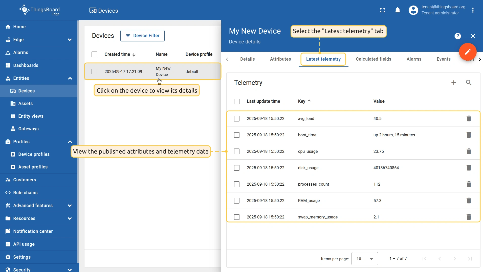在ThingsBoard Edge上查看数据