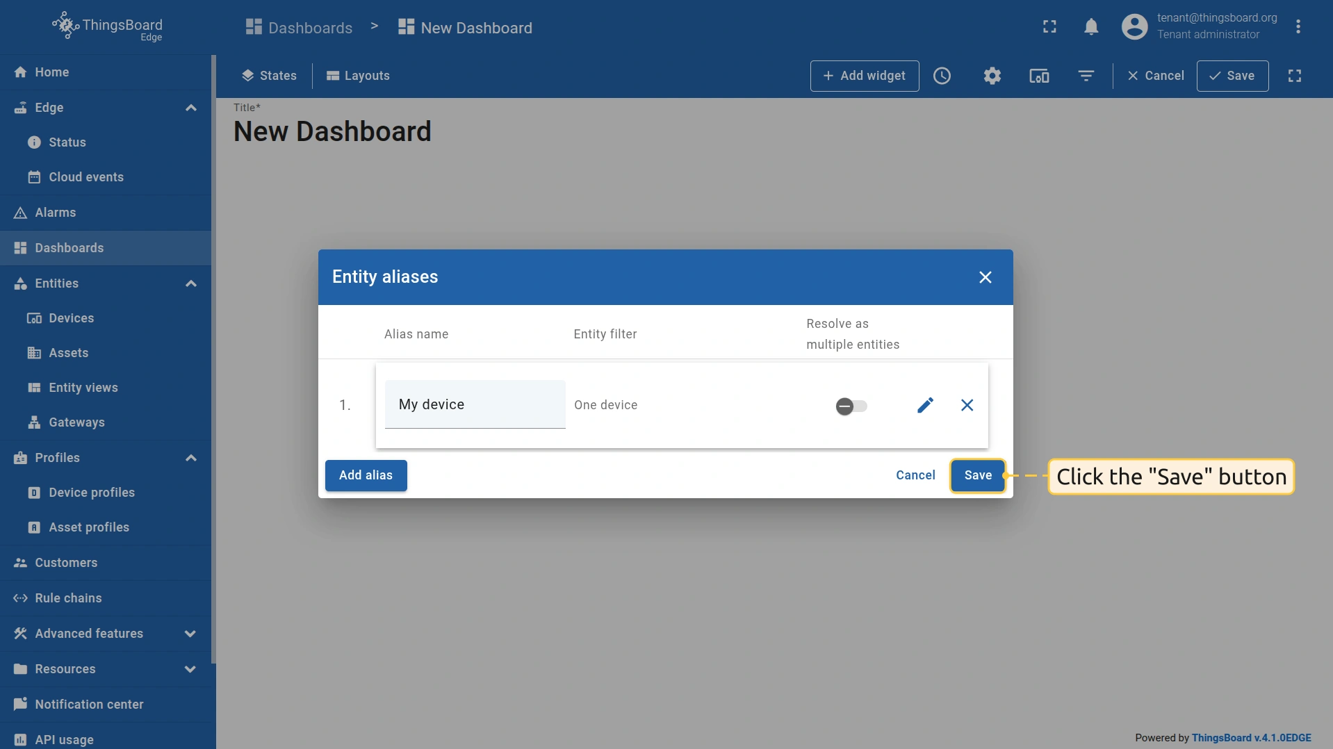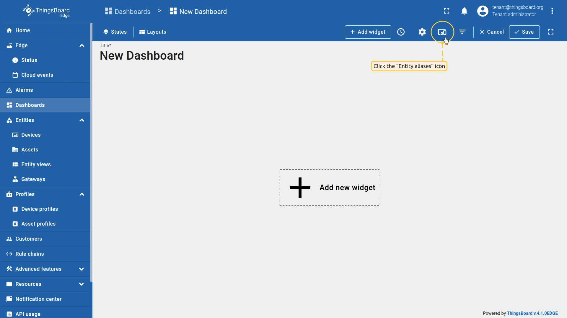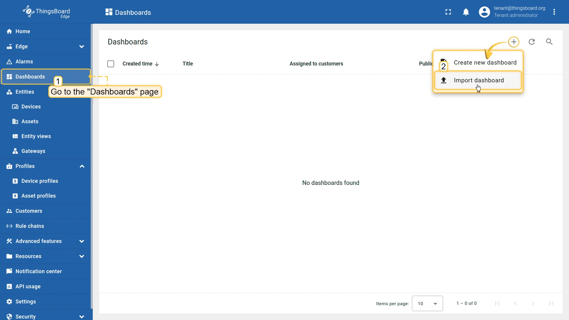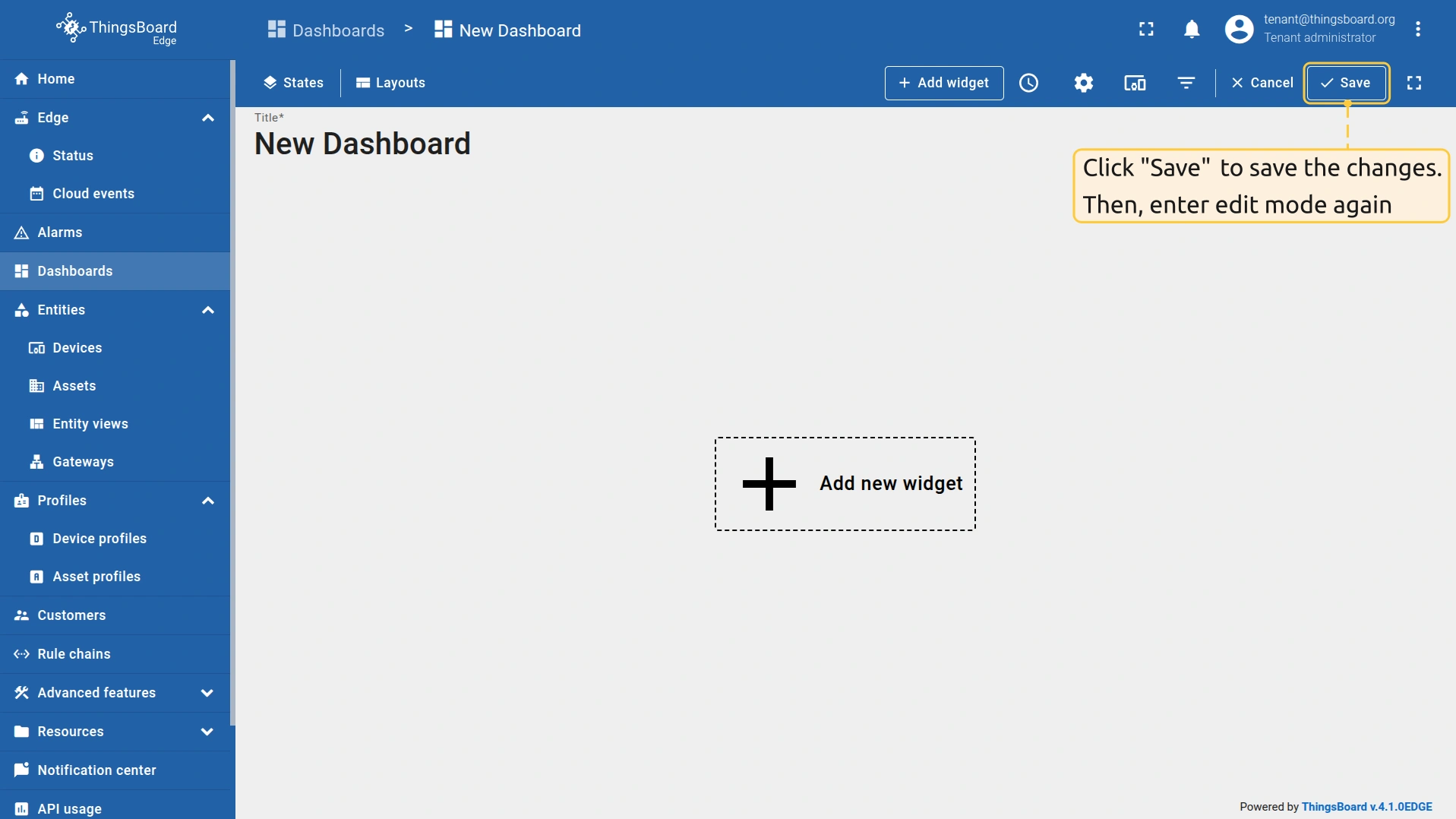ThingsBoard Edge 实例可通过 http://127.0.0.1:8080 访问。使用您的凭证登录。