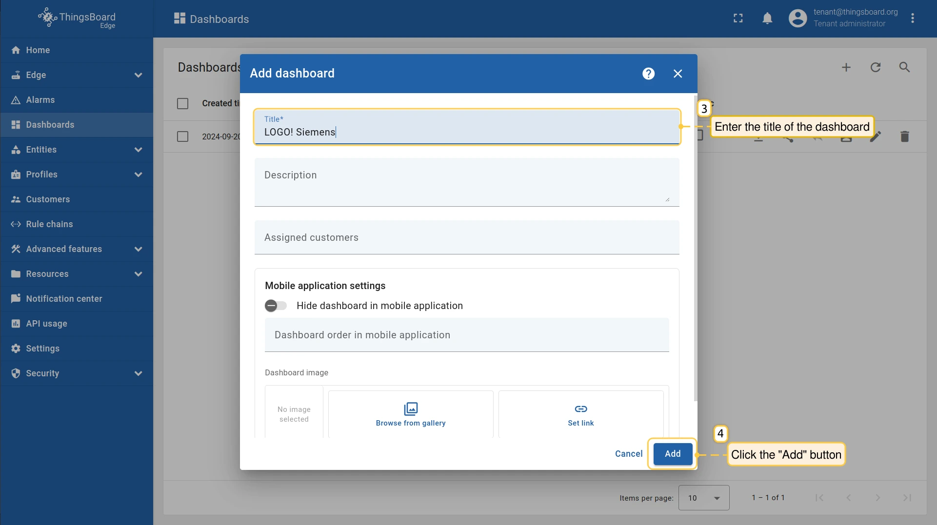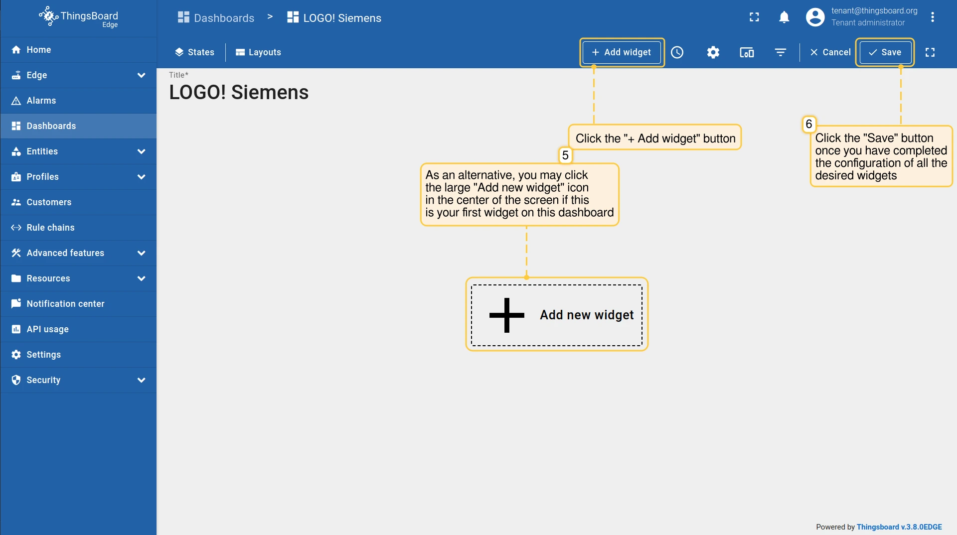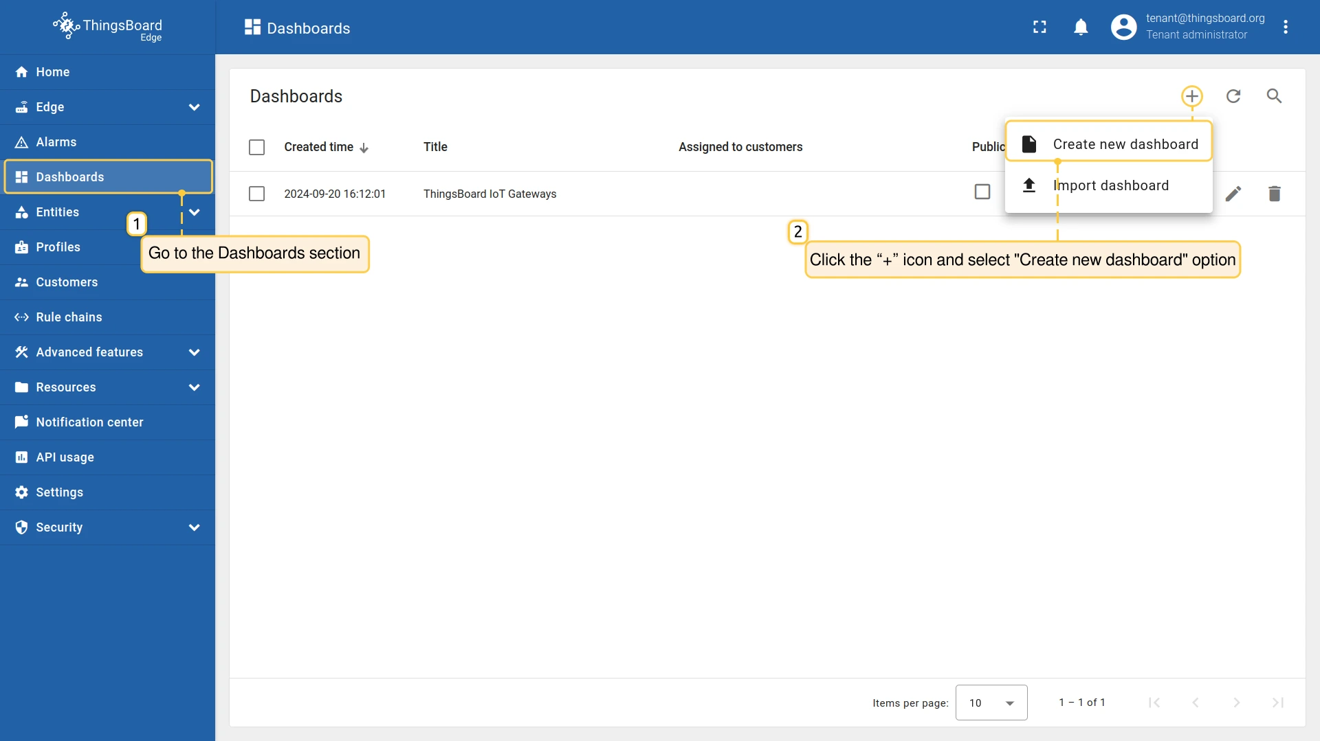 - ThingsBoard Edge 实例可通过 http://127.0.0.1:8080 访问。请使用您的凭据登录。