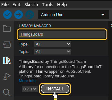 在搜索框中输入 ThingsBoard 并点击找到的库的 安装 按钮。