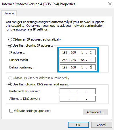 您的 PC 必须与网关处于同一网络:192.168.1.XXX。若非如此,请修改您 PC 的 IP 地址。