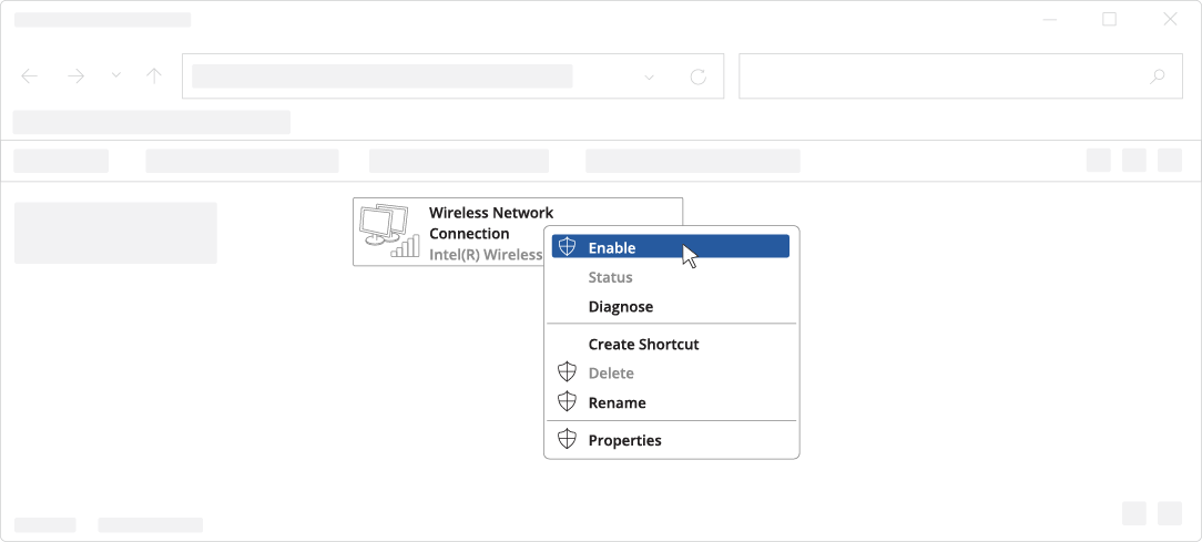 1. 确保已启用无线网络连接。进入 Start控制面板网络和 Internet网络和共享中心。点击左侧面板中的 更改适配器设置,右键点击 无线网络适配器,选择 启用