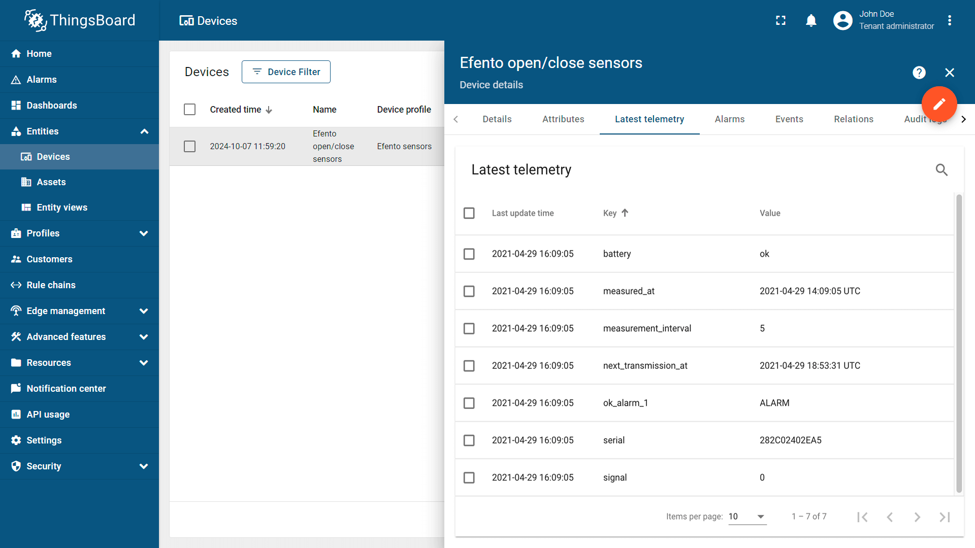 现在您可以轻松将Wireless open/close logger连接到ThingsBoard并开始发送数据。