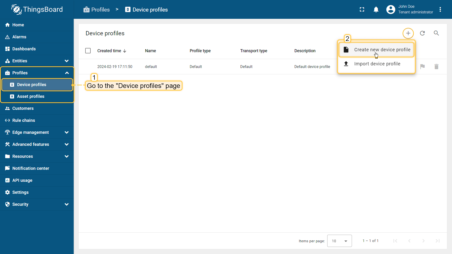 为保存传感器数据,还需在ThingsBoard上创建设备。