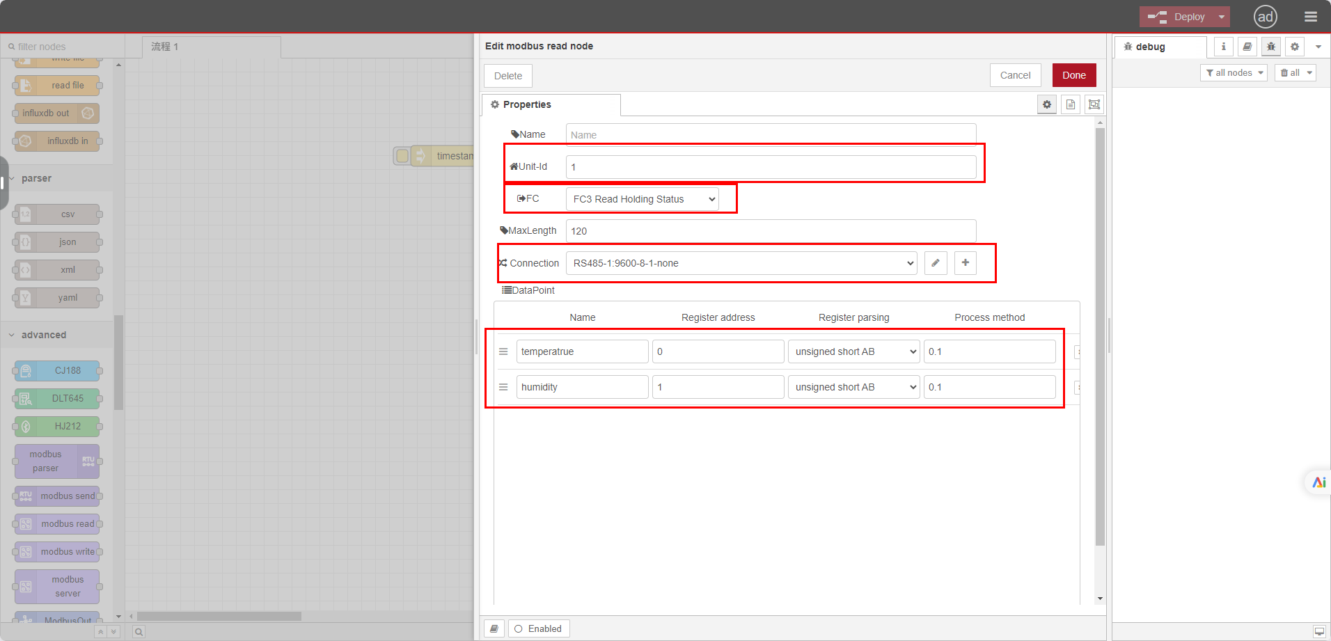 Drag out a modbus read node.