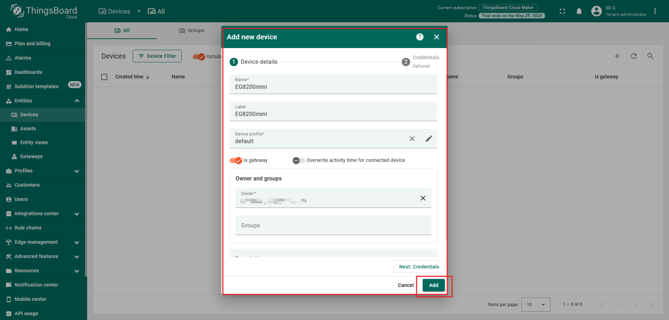 现在您可以轻松将EG8200 Gateway连接到ThingsBoard并开始发送数据。