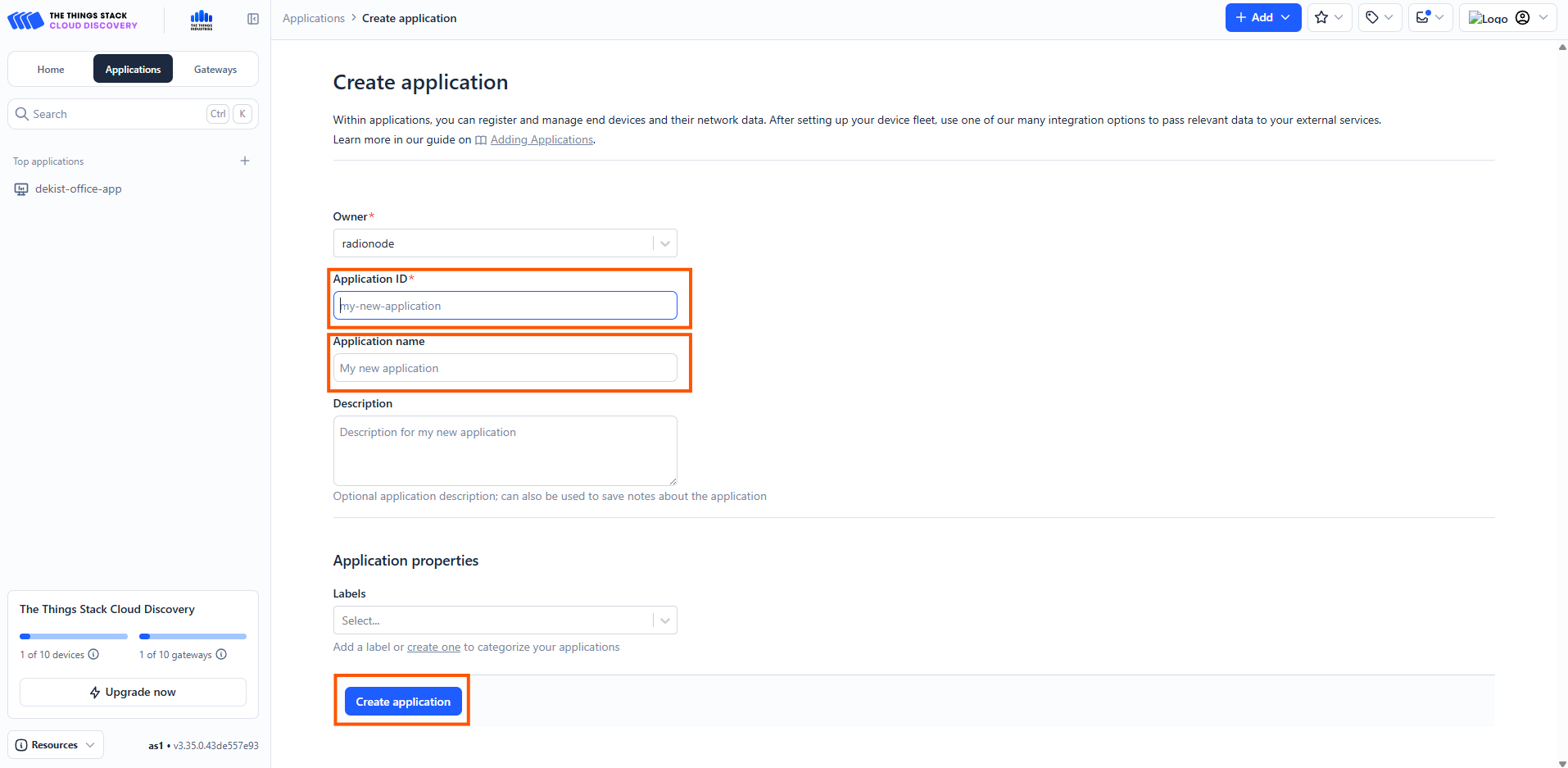 在对应位置正确输入DevEUI 。您可以在设备侧面的标签上找到DevEUI。