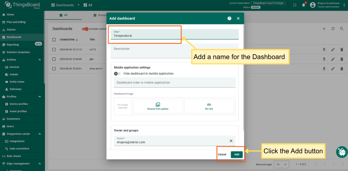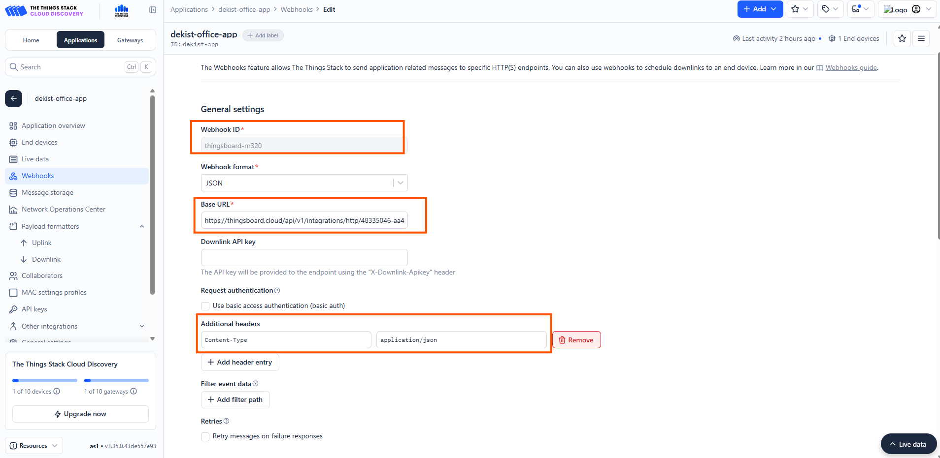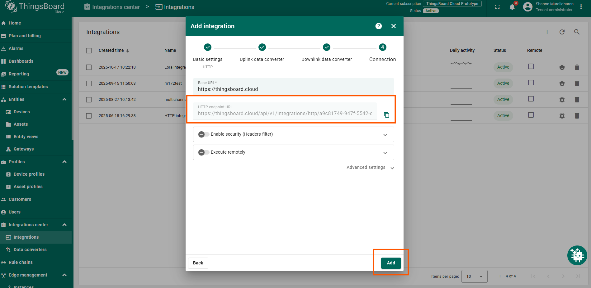 在Base URL 中添加您从ThingsBoard平台复制的端点URL 。