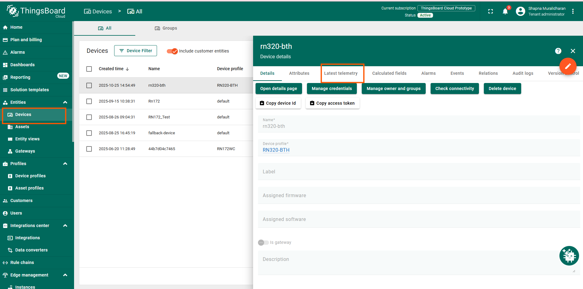 如何将 RN-320 BTH LoRaWAN Temperature and Humidity sensor 连接至 ThingsBoard?
