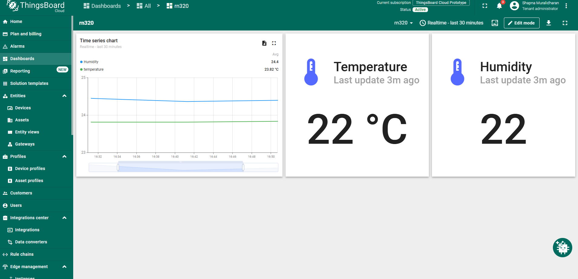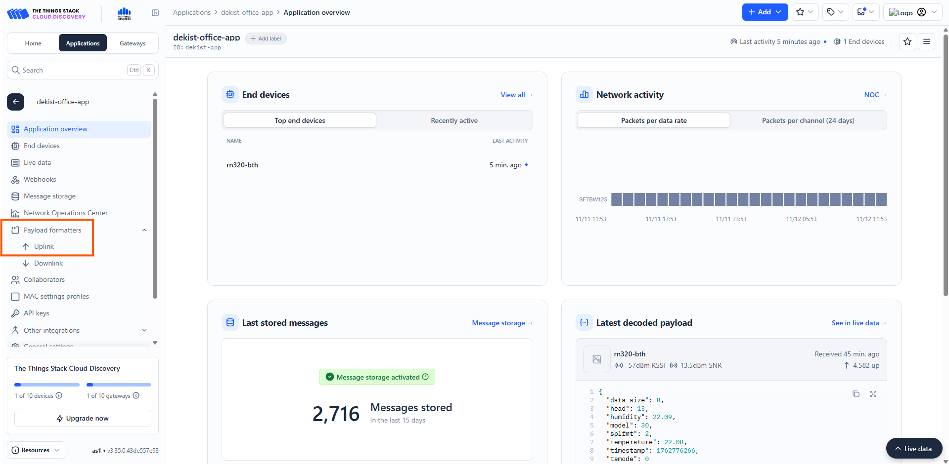 现在网络服务器与ThingsBoard平台之间的通信将开始,LoRaWAN设备的数据将发送到ThingsBoard。
