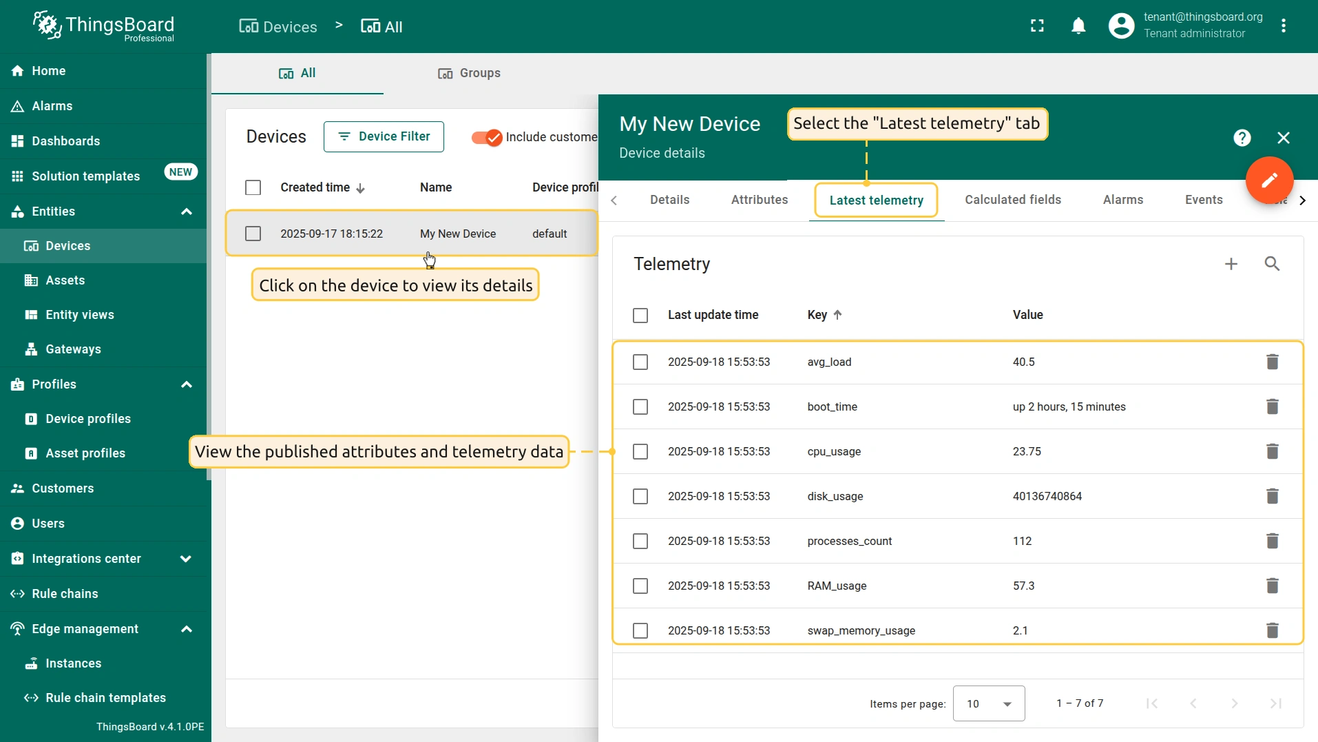 在ThingsBoard上查看数据