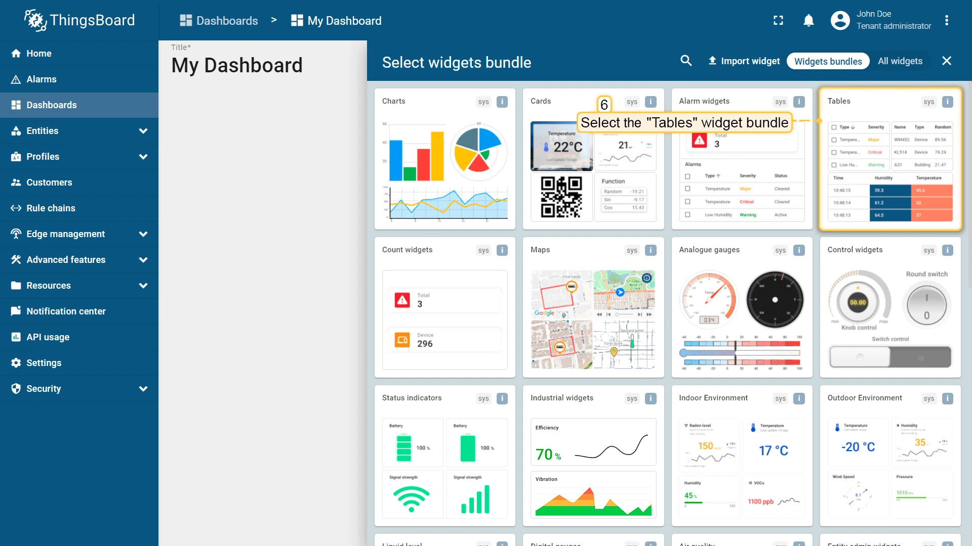 - Go to the Dashboards section and open the dashboard you have created on the ThingsBoard社区版Server
