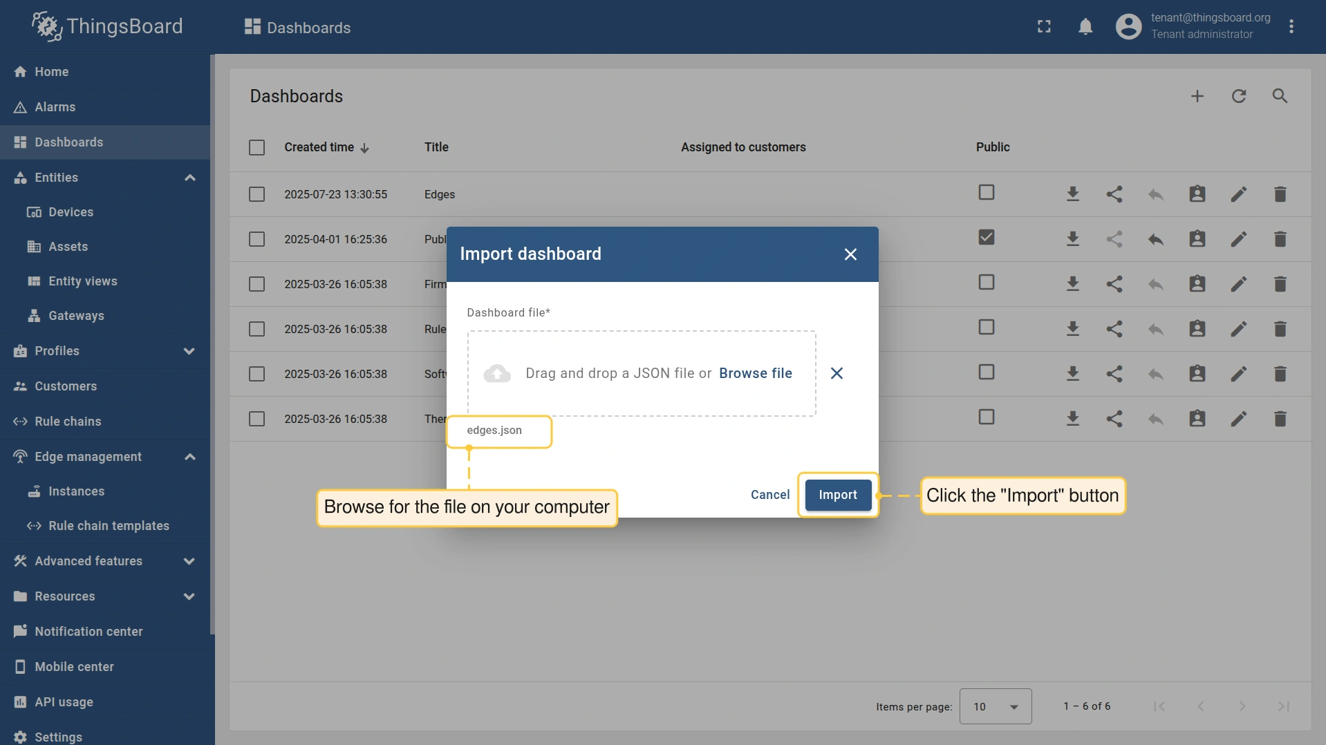 - 下载预配置的 Edge仪表板。