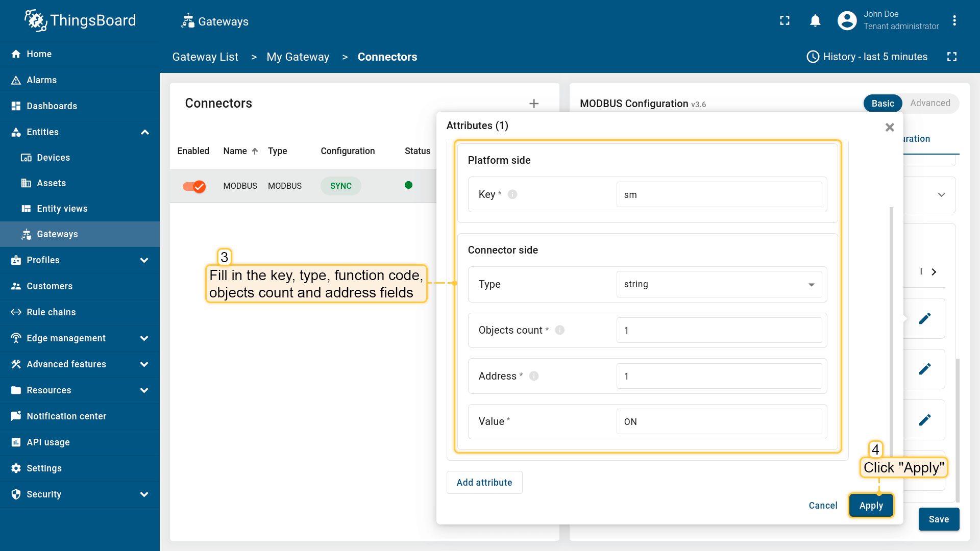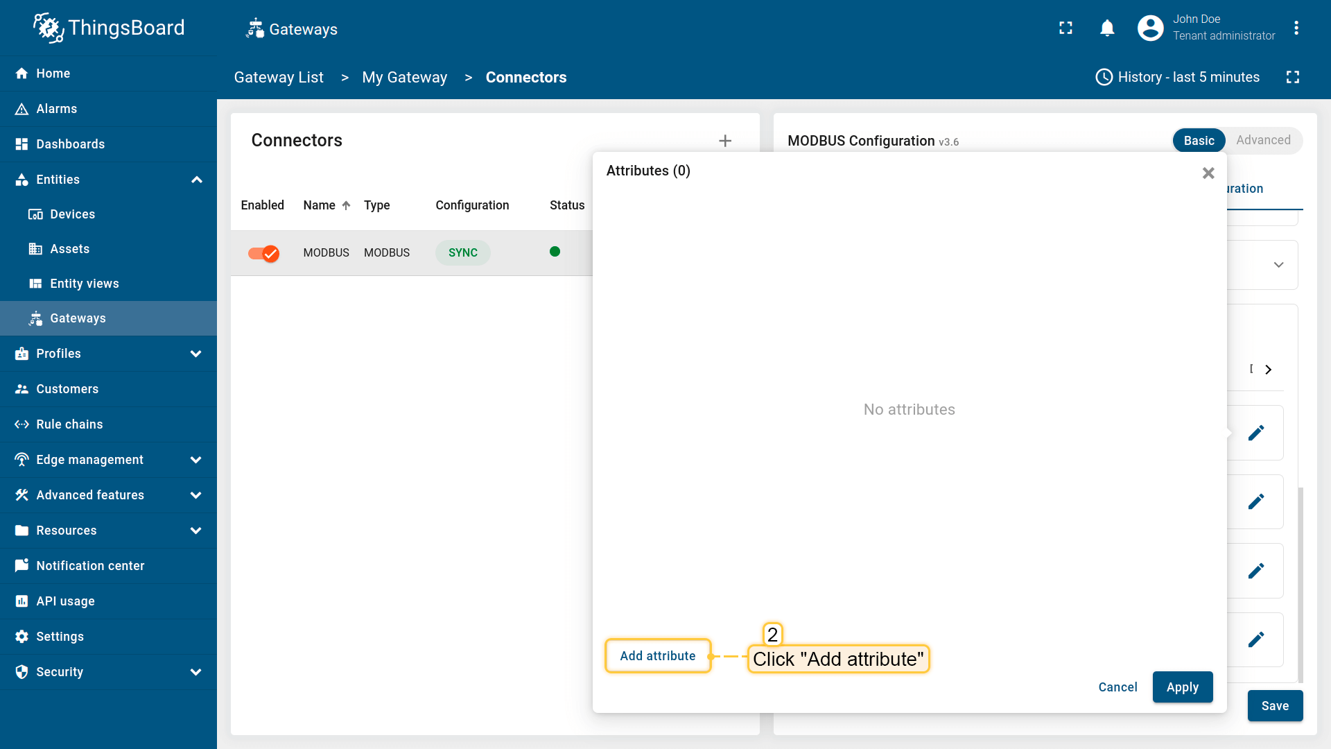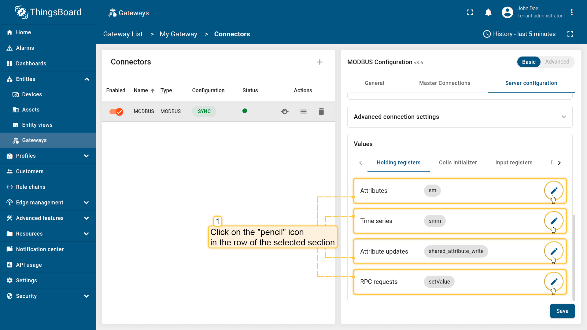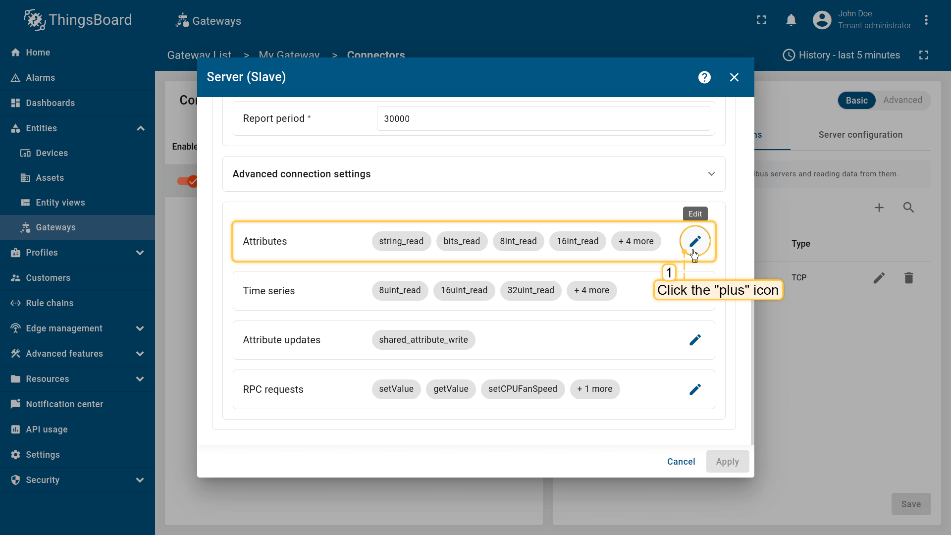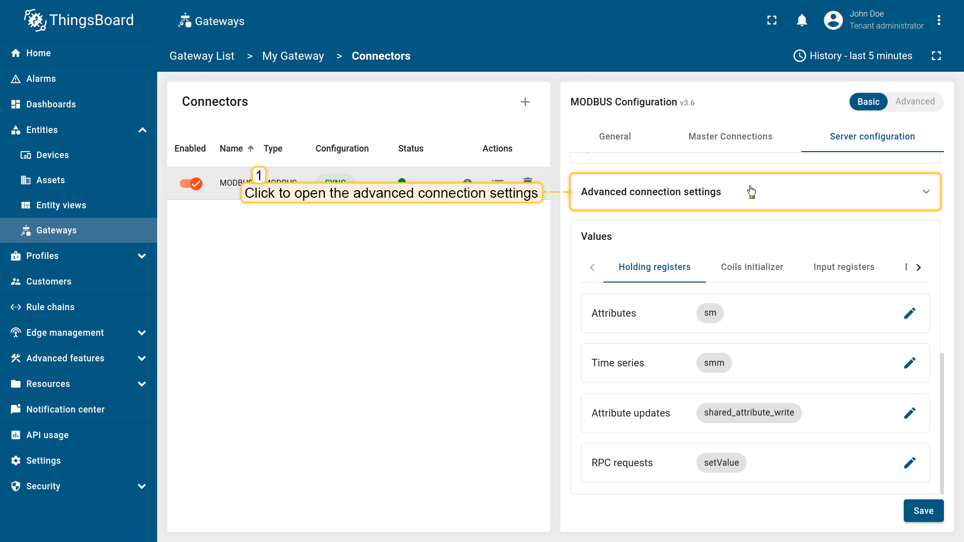 - 基础模式专为ThingsBoard物联网网关新用户设计,旨在以最少的配置快速设置连接器。它提供了带有基本设置的简化界面。