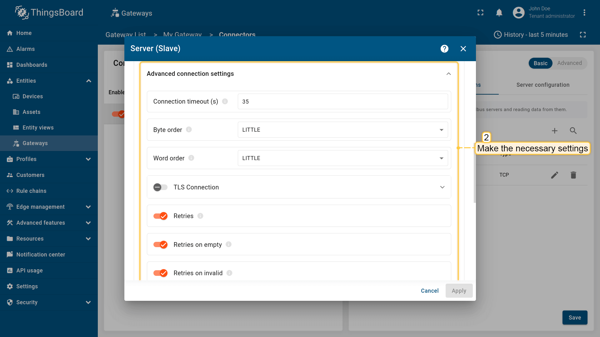 | 连接尝试次数 | 5 | 通过 ThingsBoard 网关进行的连接尝试次数 |