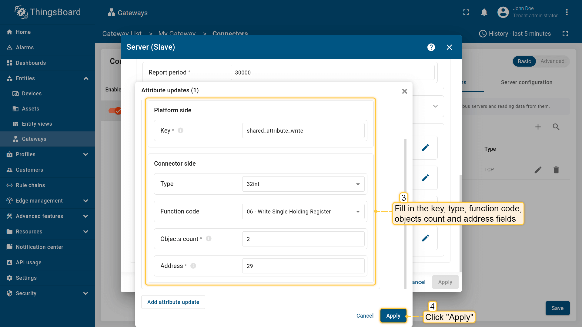 - Report period - 向 ThingsBoard 发送数据的周期(毫秒);