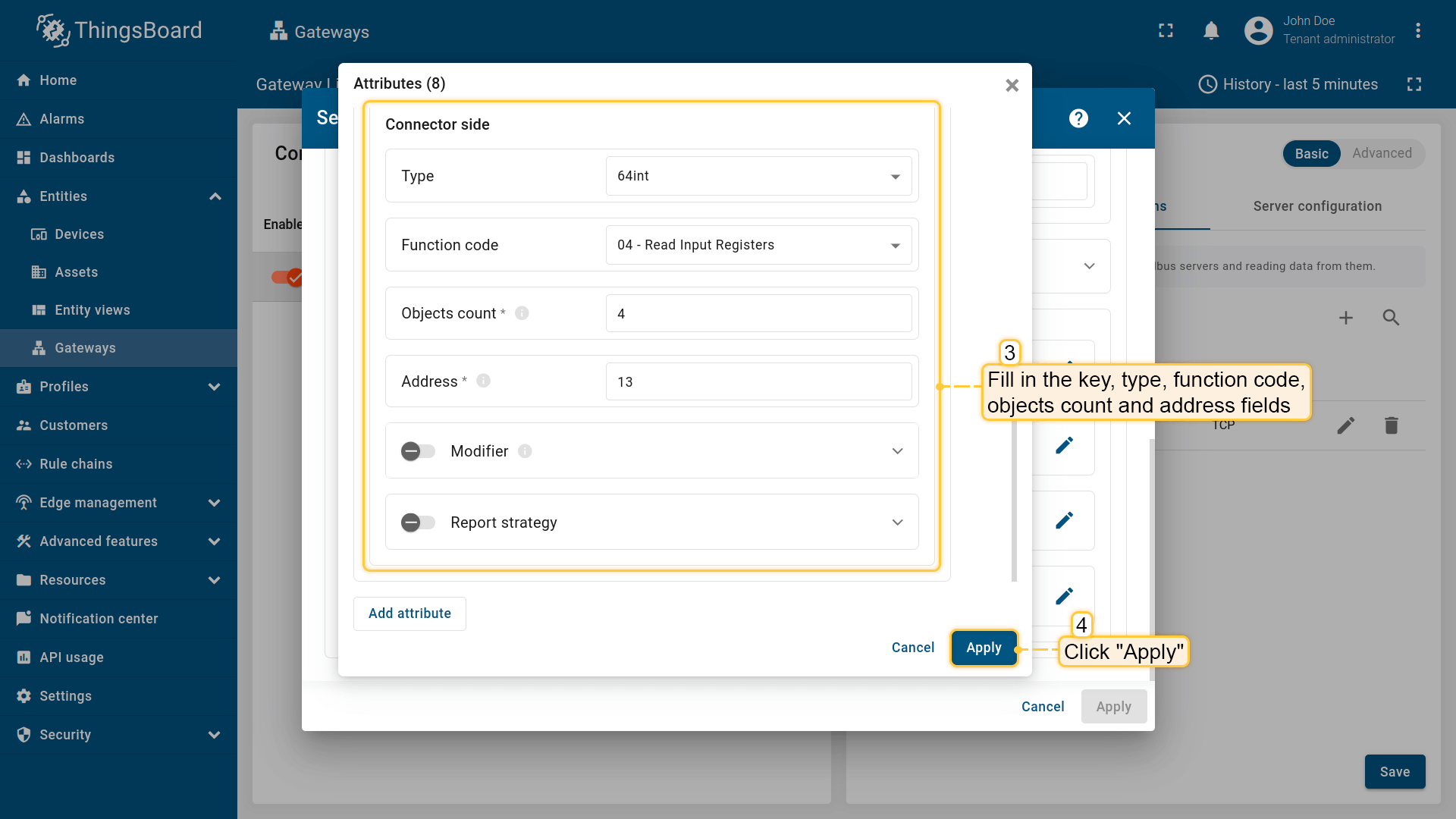 此外,如果您是ThingsBoard物联网网关的新用户,我们建议您阅读快速入门指南,以了解ThingsBoard物联网网关的基本概念及其与Modbus协议的工作方式。