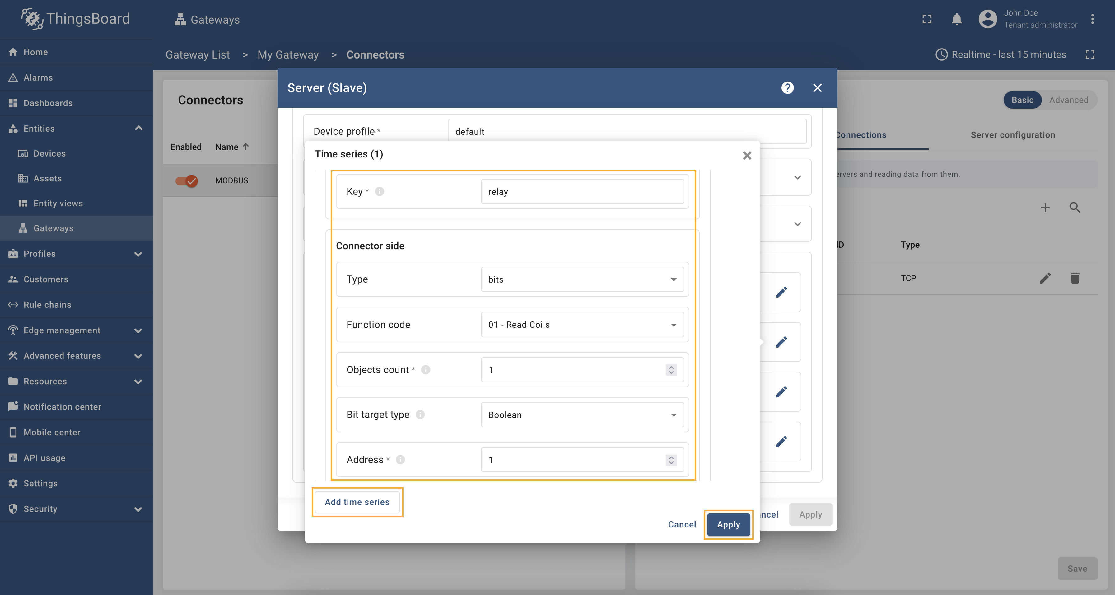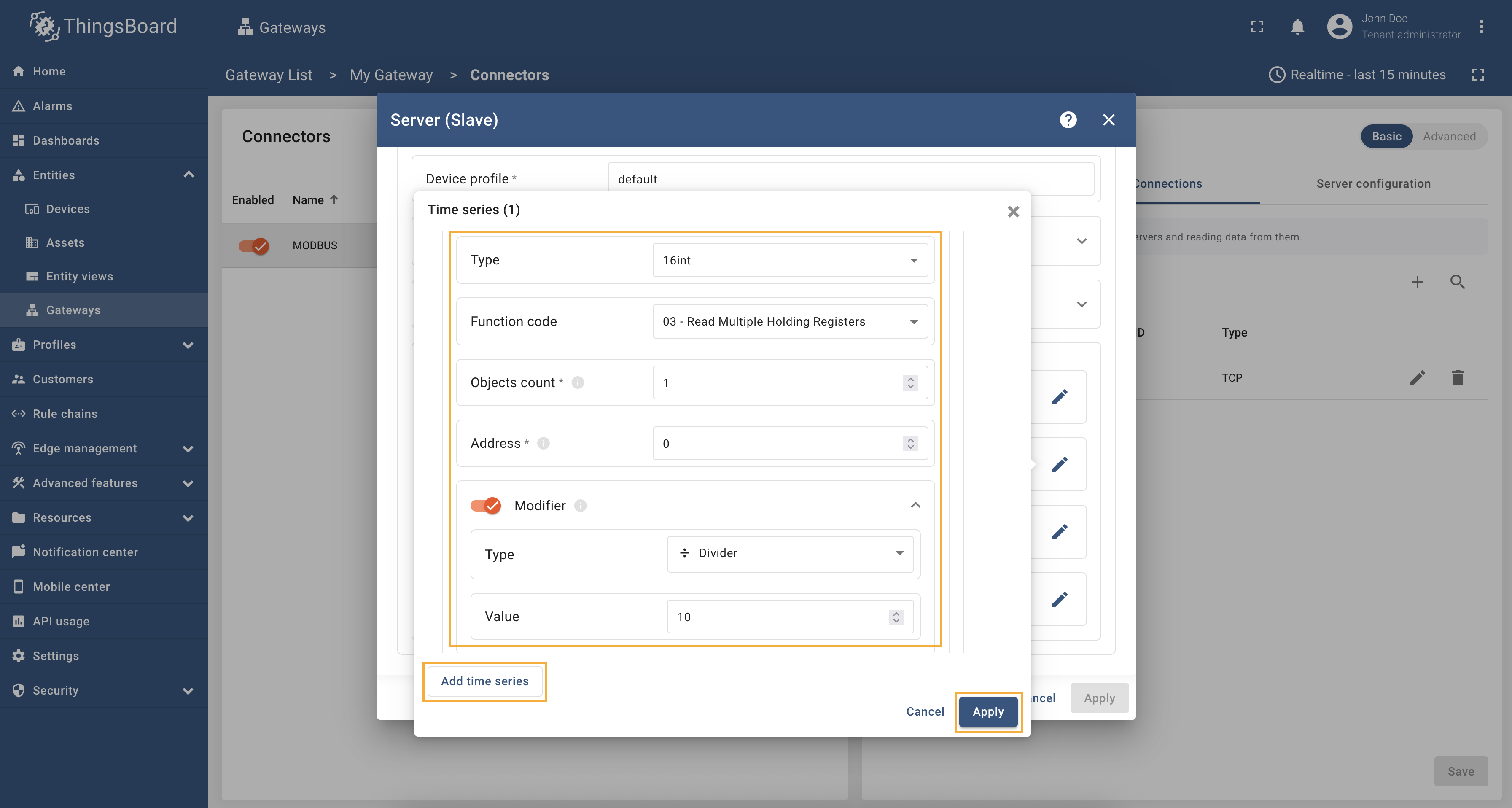 该连接器可以通过用户界面表单进行配置,帮助您建立与Modbus服务器的连接、采集数据并向从设备写入数据。让我们来看看所有可用的设置并逐一清晰地解释,这将帮助您了解一切是如何工作的。