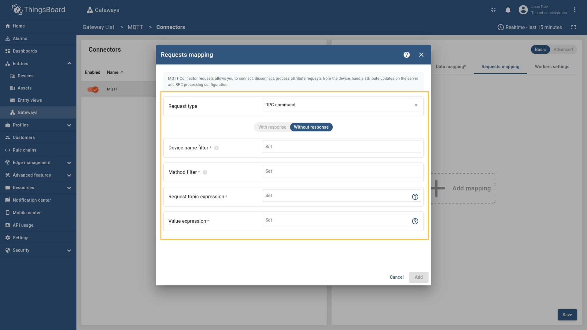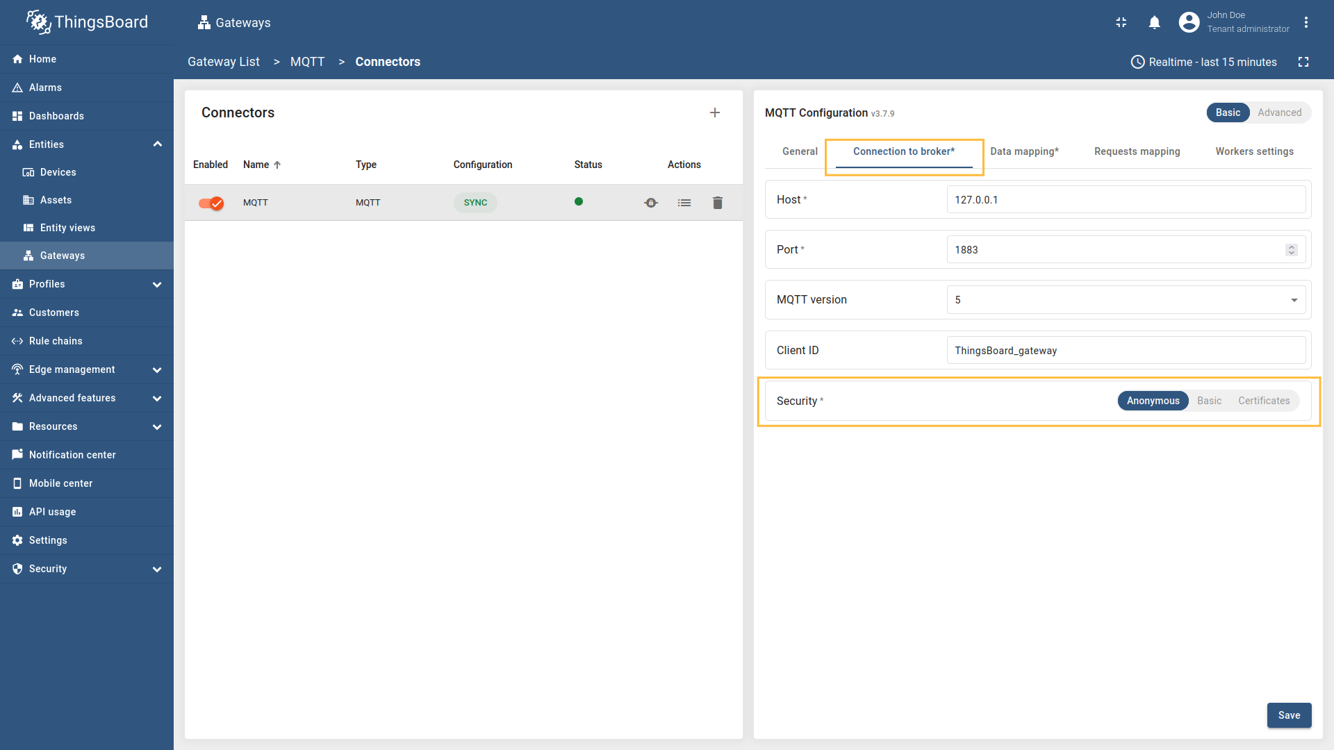 - Basic模式专为ThingsBoard IoT网关新用户设计,可通过最少的配置快速设置连接器。它提供简化的界面和基本设置。