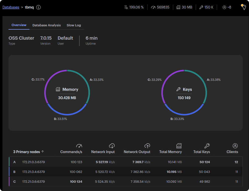 我们选择迁移到Redis,核心原因在于它能够解决PostgreSQL遇到的关键性能瓶颈。 PostgreSQL依赖磁盘存储和垂直扩展,而Redis主要在内存中运行,可显著降低读写延迟。 此外,Redis的分布式架构使TBMQ能够水平扩展,即使在客户端会话数与消息存储量持续增长的情况下,也能保持高效的消息检索与投递。