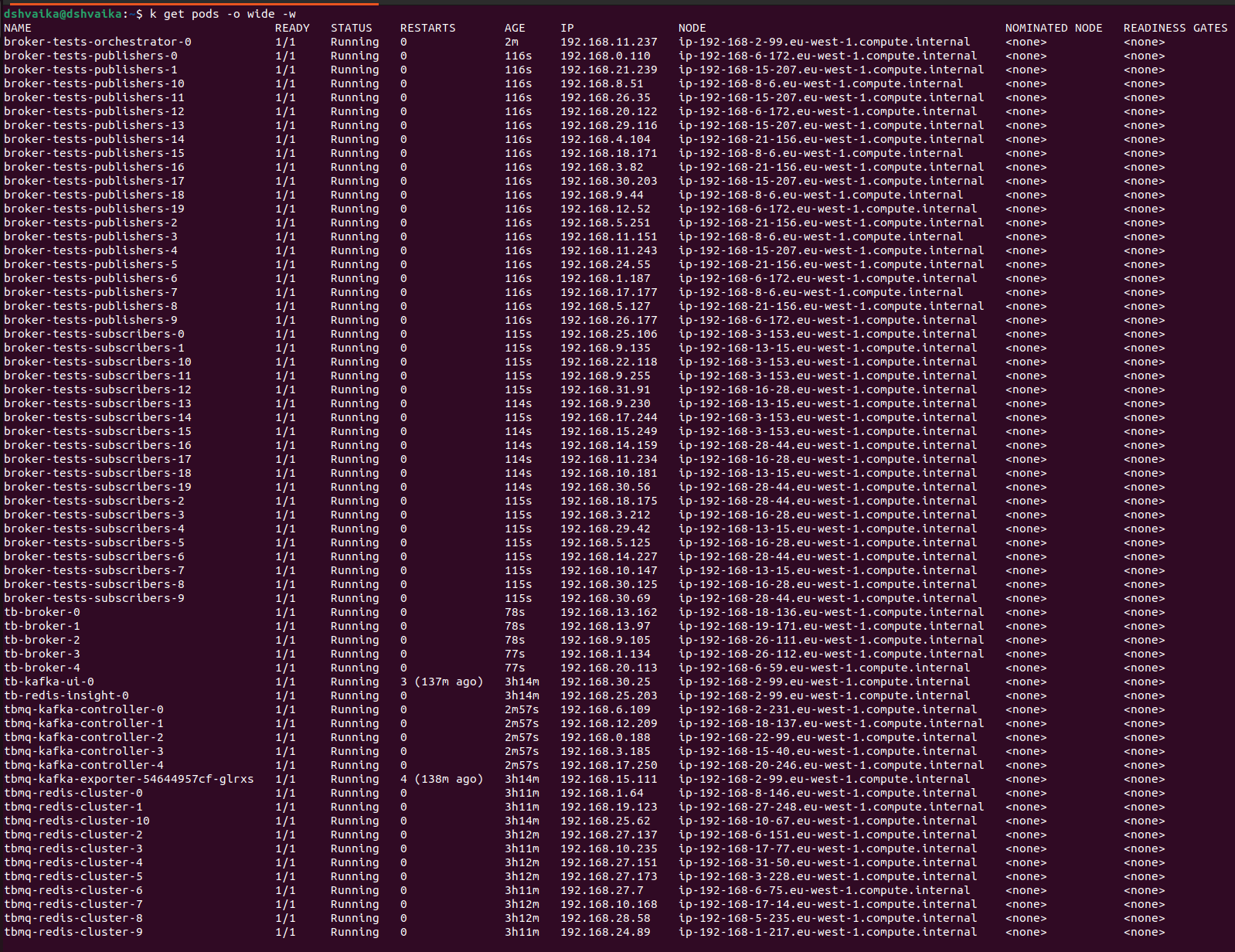 建议先阅读我们的安装指南,其中提供了在AWS上部署TBMQ的分步说明。 此外,你还可以查看本次性能测试使用的脚本与参数所在分支,以深入了解具体配置。 在性能测试执行层面,我们提供了专用性能测试工具, 可用于生成MQTT客户端并模拟目标消息负载。尤其针对P2P场景,我们对测试工具进行了增强,使其能够自动生成发布者与订阅者配置, 而无需从JSON配置文件加载。更多P2P测试配置细节请参考README.md。