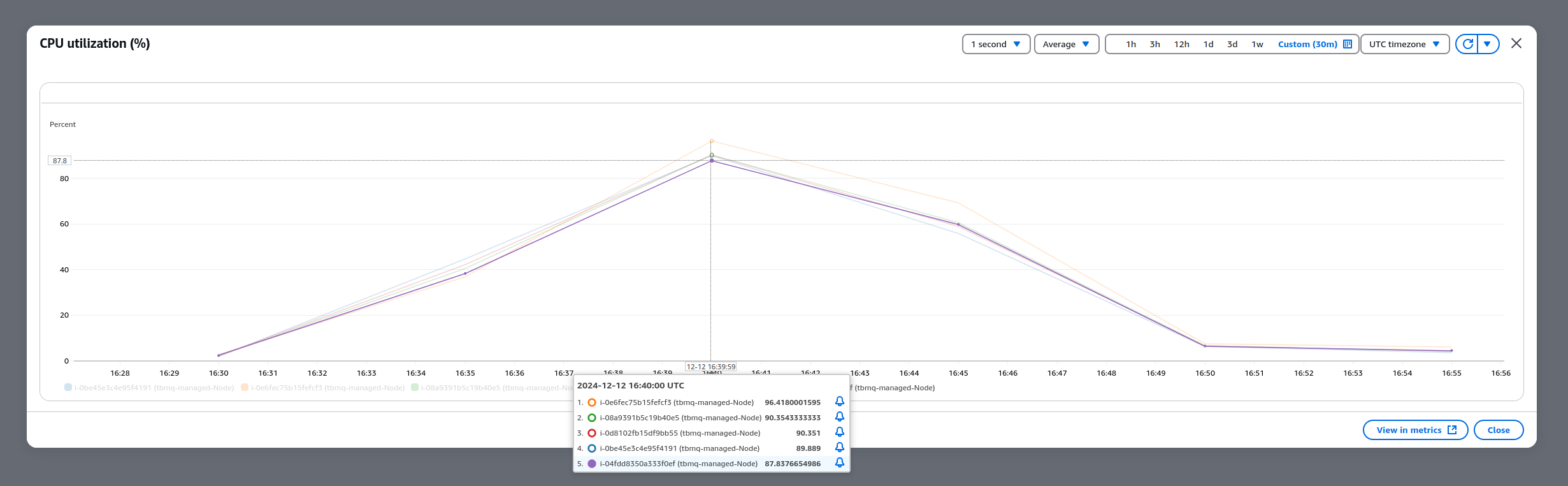 - TBMQ平均CPU:所有TBMQ节点的平均CPU利用率。