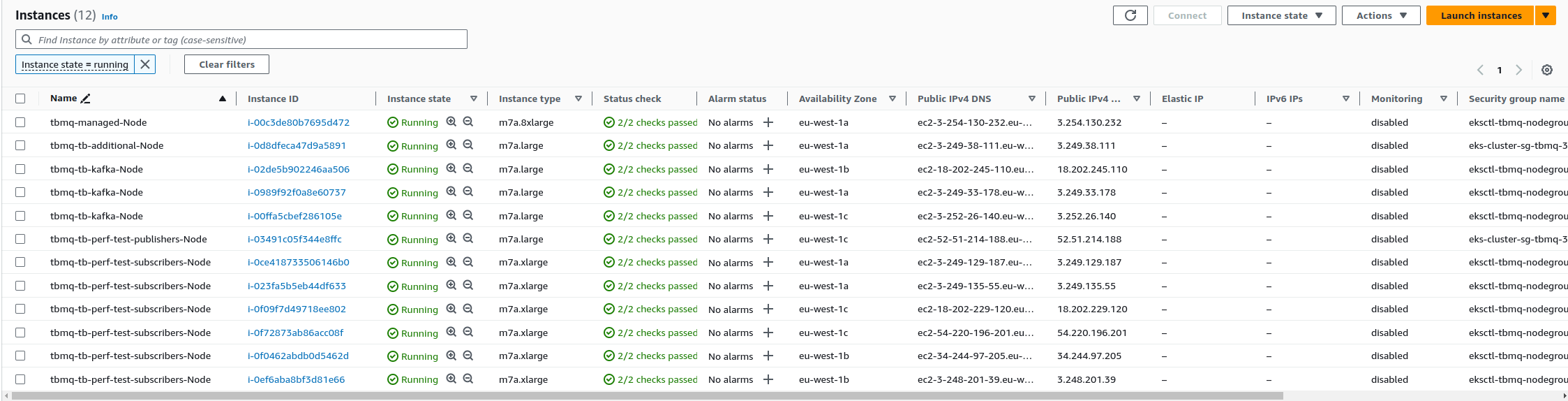 有关我们测试配置中使用的AWS EC2实例的完整视图,请参阅以下图片: