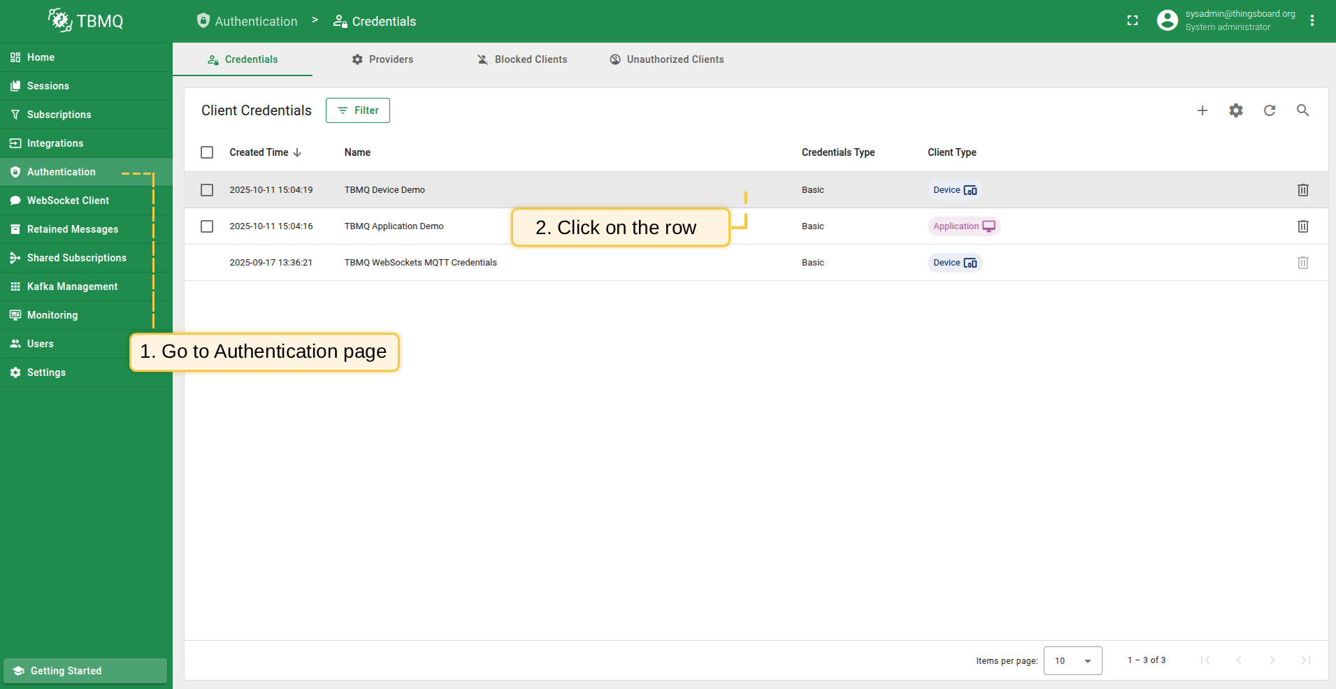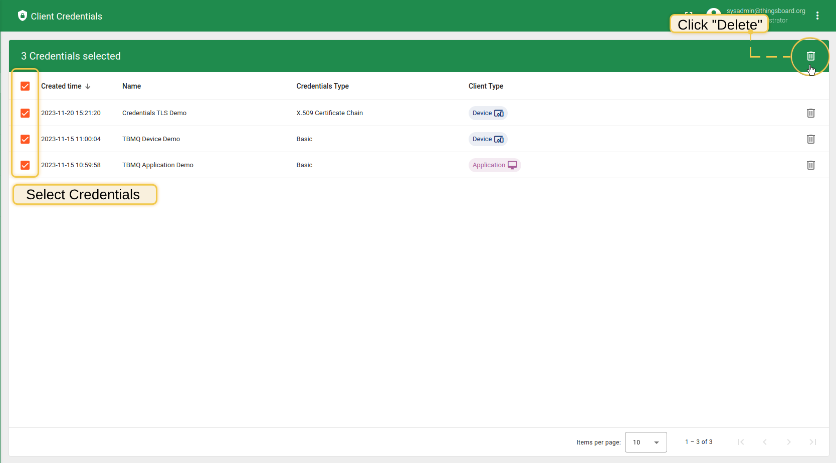 Broker管理员可通过Web UI或 REST API 从TBMQ系统中移除客户端凭据。
