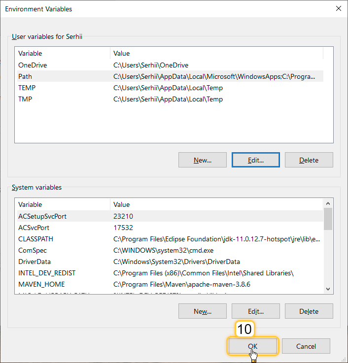 按 Win + X,选择「System」,然后点击「System」页面; 进入「About」部分,点击「Advanced system settings」; 在「System Properties」弹出窗口中,点击「Advanced」选项卡上的「Environment Variables」按钮; 在「Environment Variables」弹出窗口中选中「Path」,点击「Edit」按钮; In the “Edit environment variable” pop-up window click on the “New” button and add the path to the directory containing 'mosquitto_pub.exe' and 'mosquitto_sub.exe' ('C:\Program Files\mosquitto' by default). Click “OK” button; 点击「OK」保存环境变量更改; 最后点击「OK」应用系统属性中的所有更改。 |