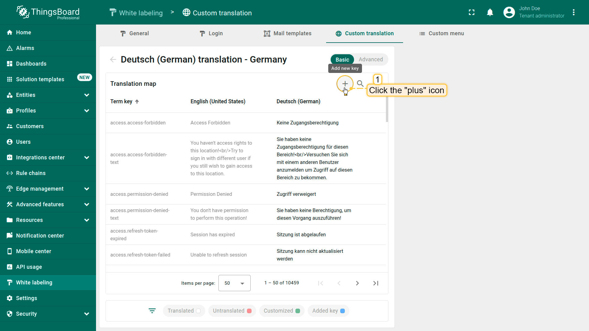 - 在”Basic”选项卡中,可编辑现有翻译键或添加新键。