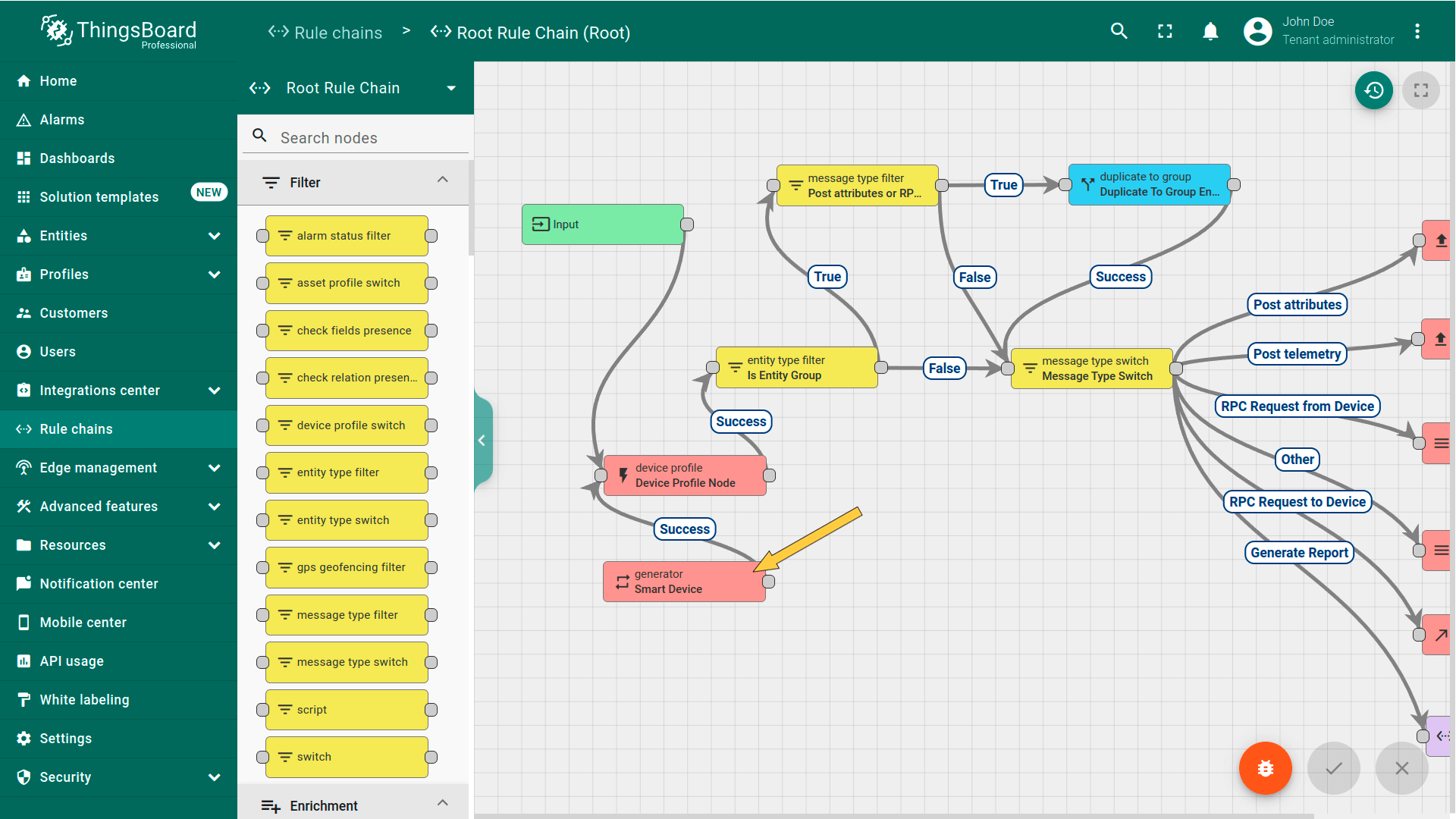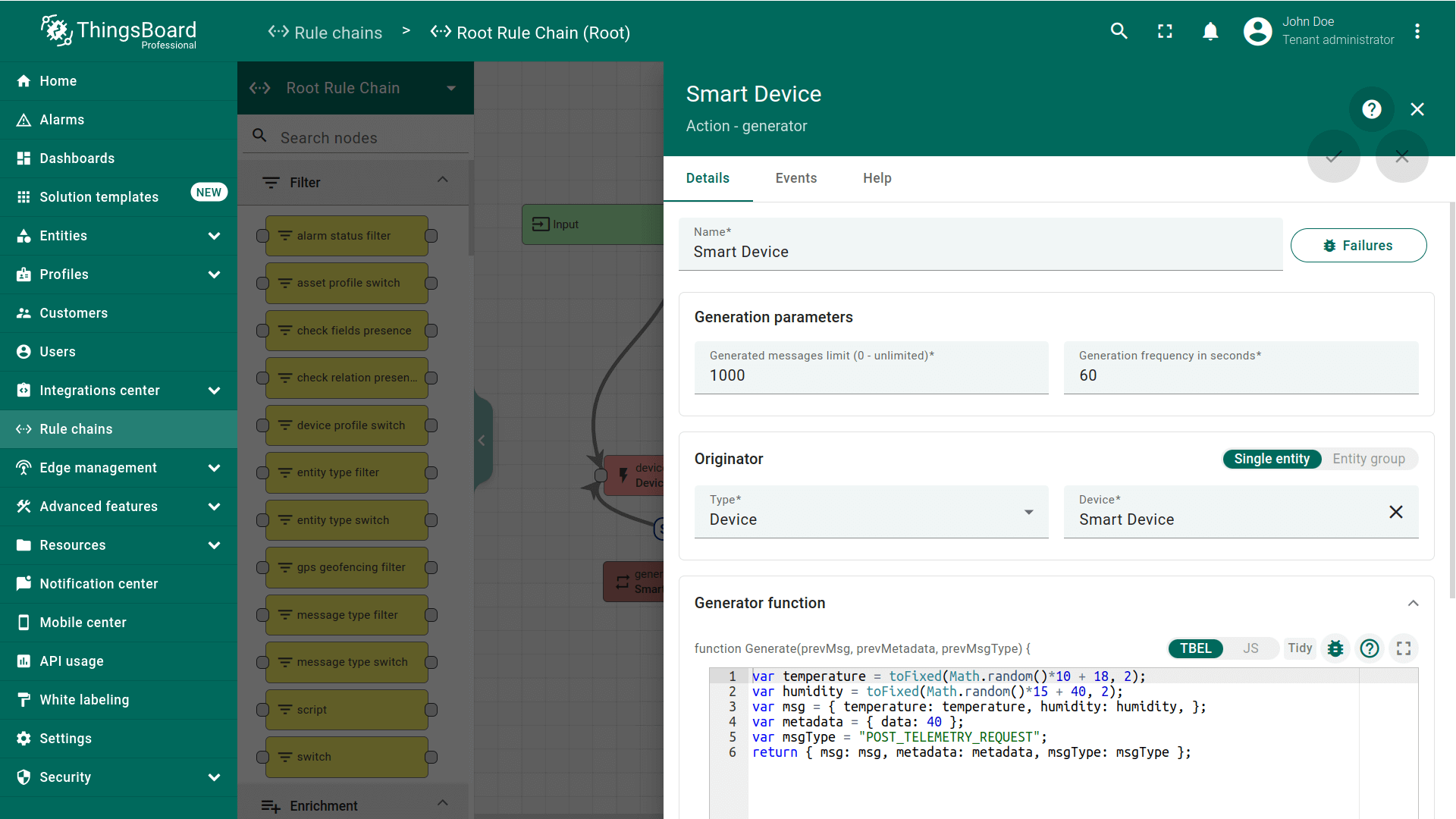 - 指定发送温度读数的设备作为数据源,以及对应的遥测键。
