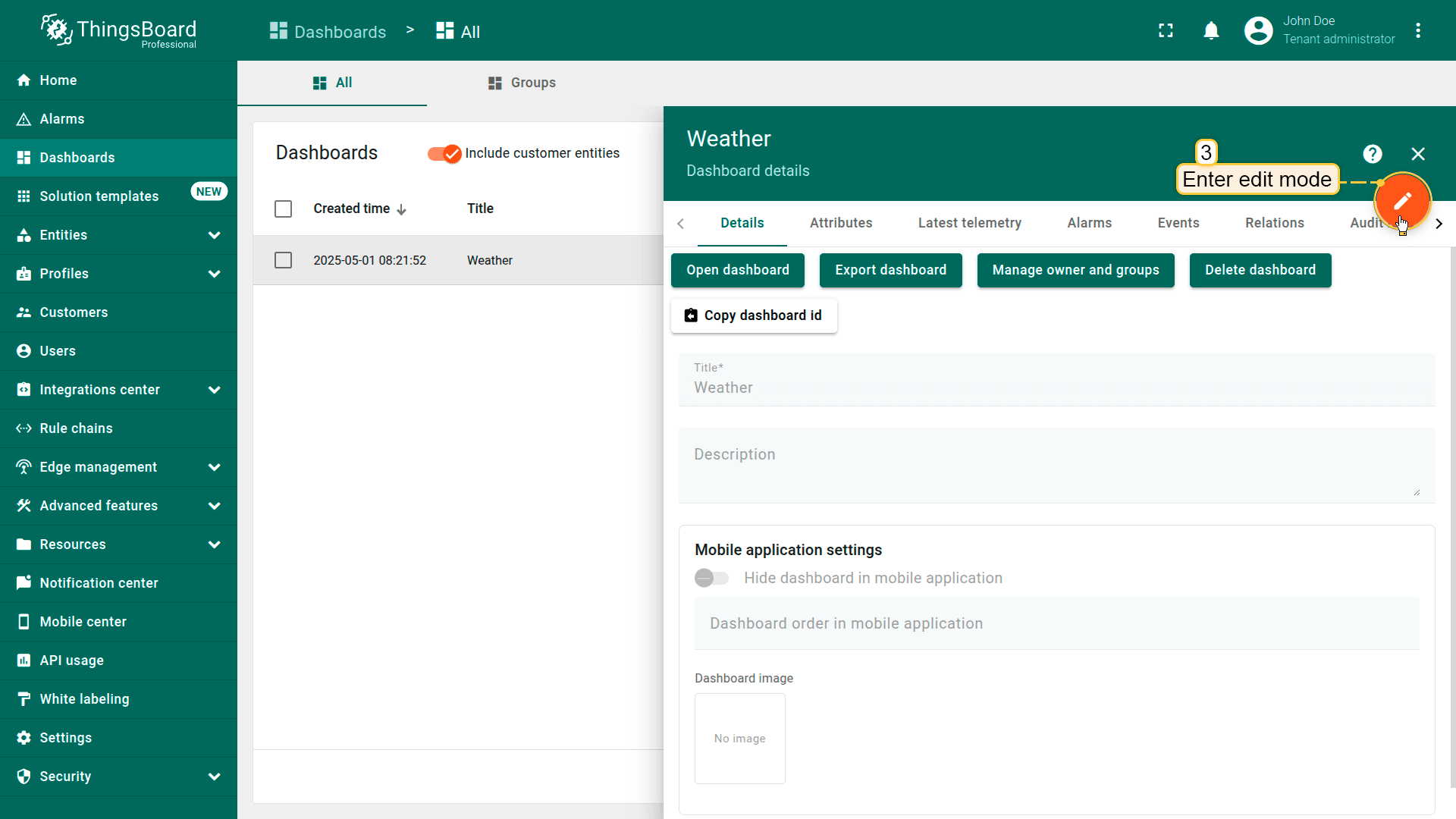 Now navigate to the “Weather” dashboard and enter its edit mode.