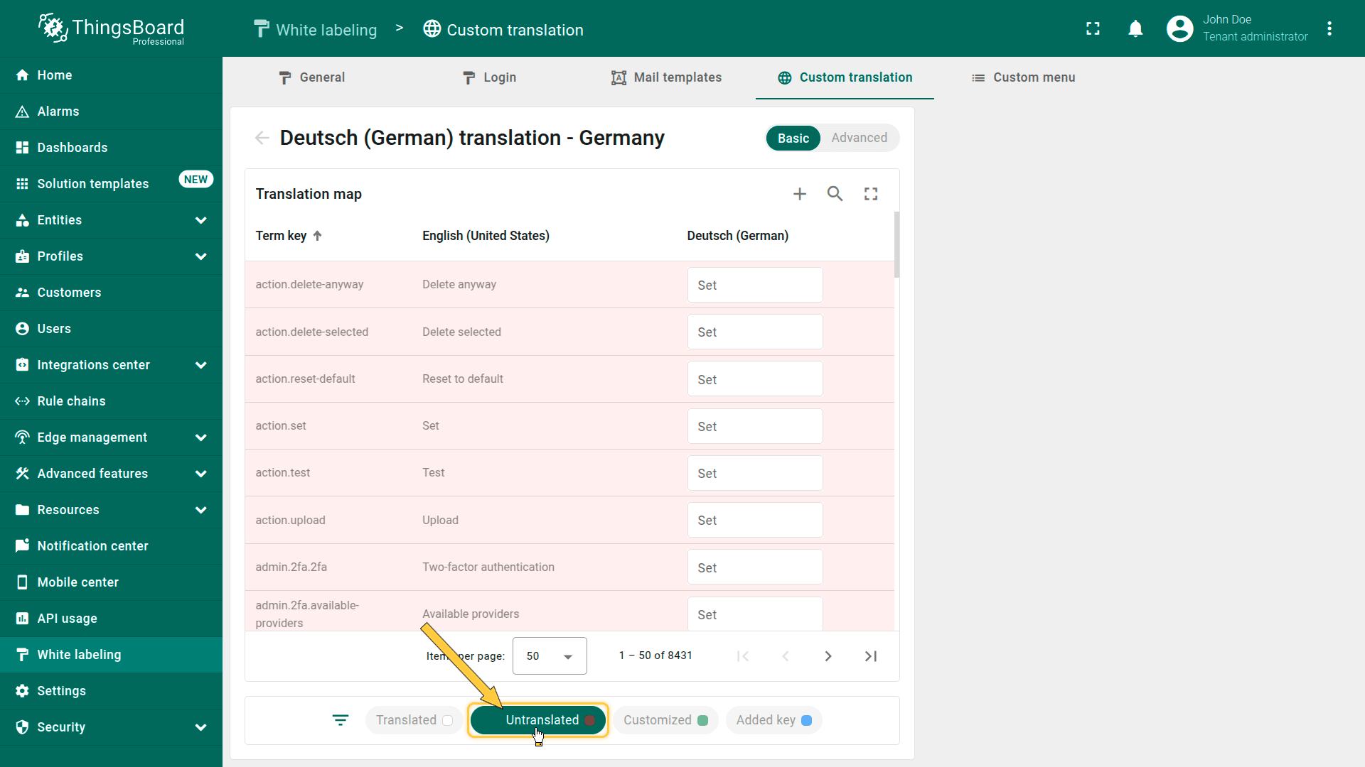 The “Untranslated” shows keys that are still missing translations.
