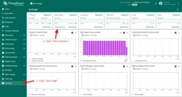 ThingsBoard团队已准备规则引擎的“默认”仪表板。 该仪表板会为每个租户自动加载。 可通过“Api Usage”->“View statistics”访问(见下图)。
