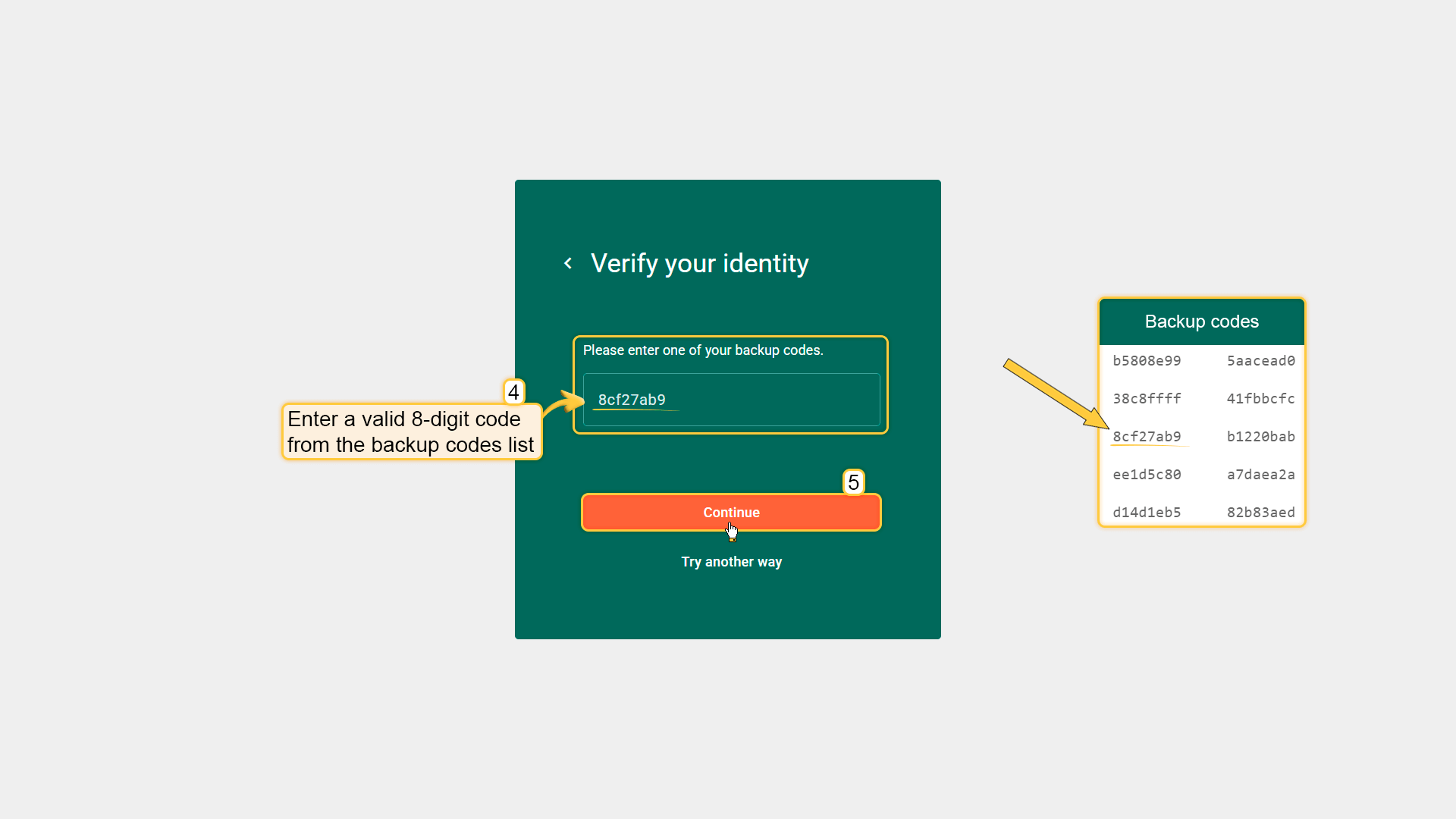 - 选择\u201cBackup code\u201d。