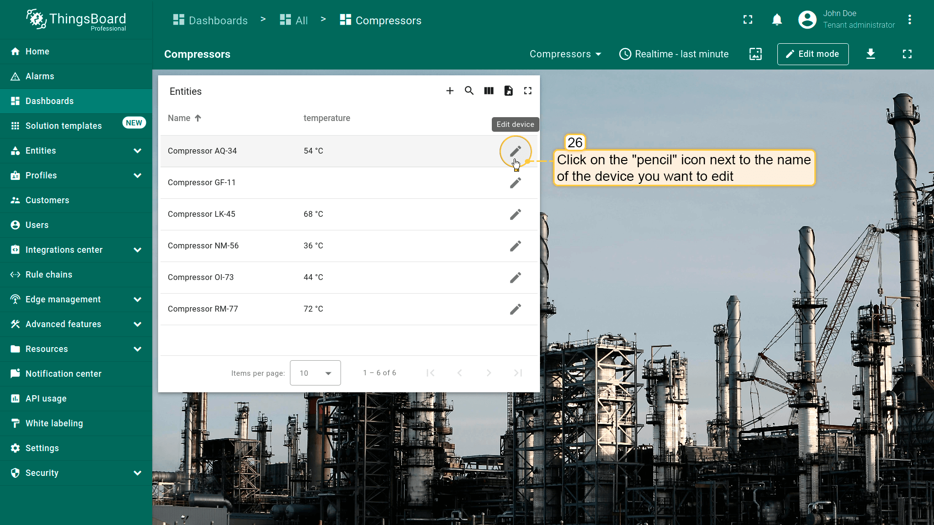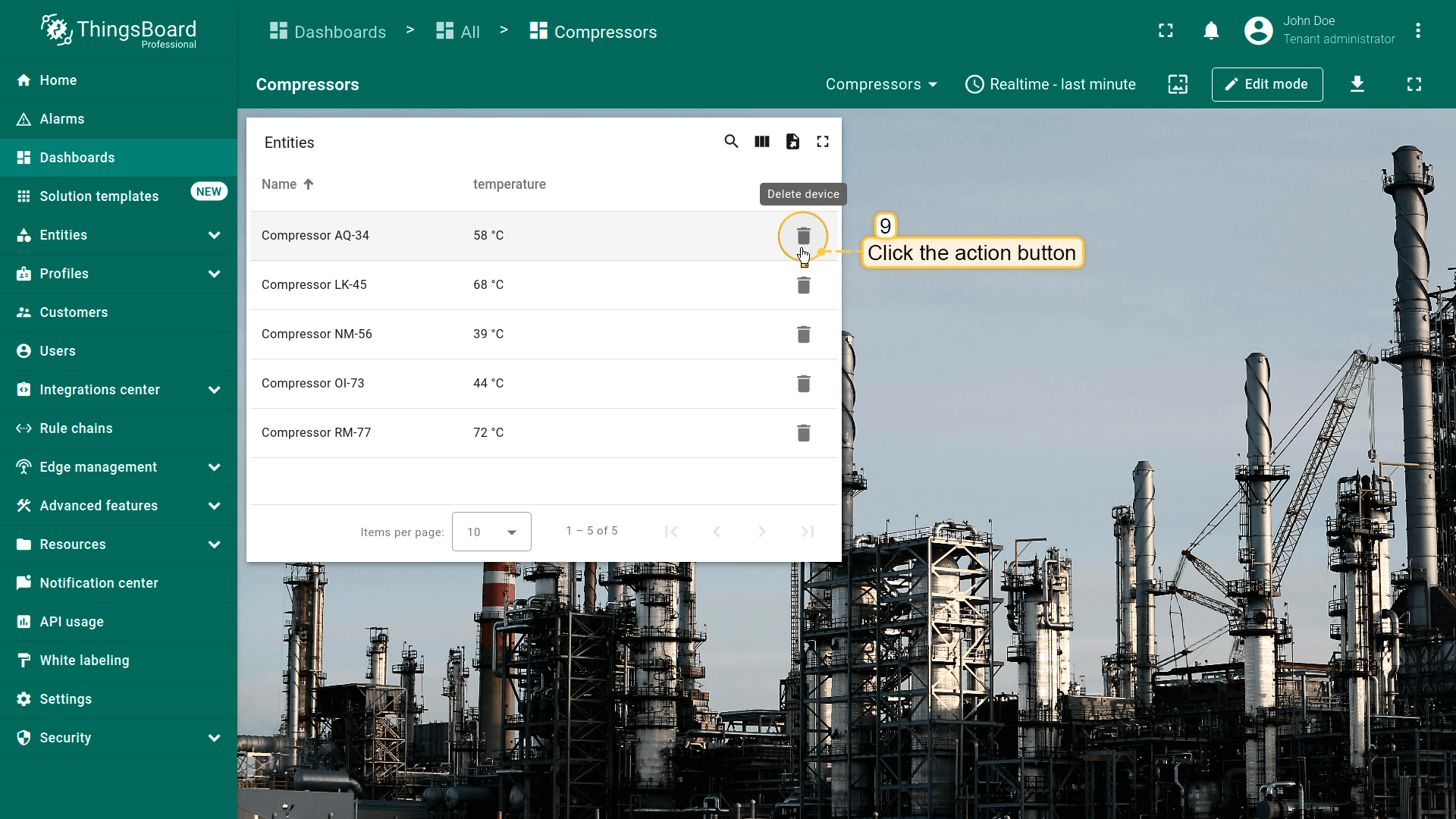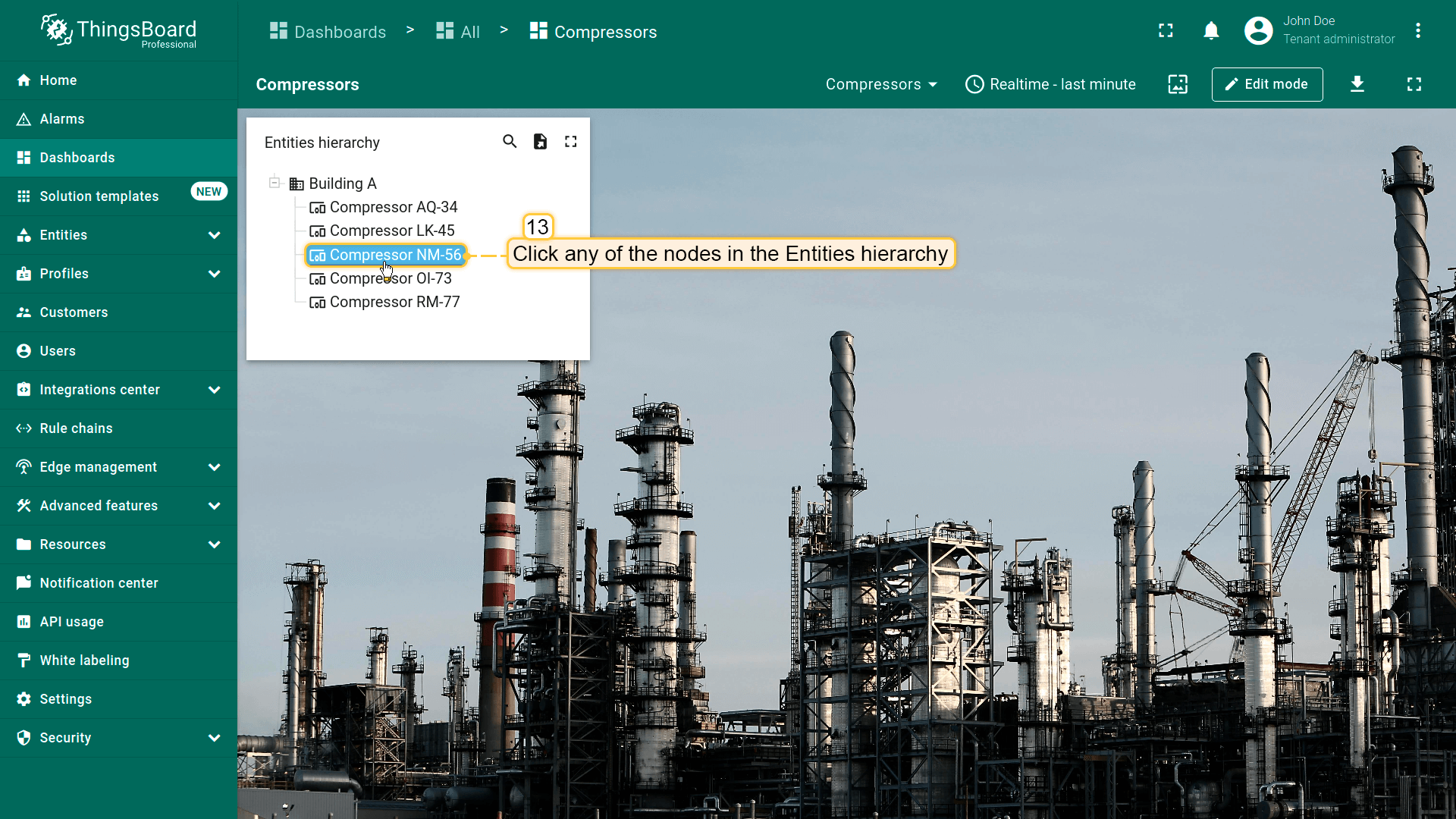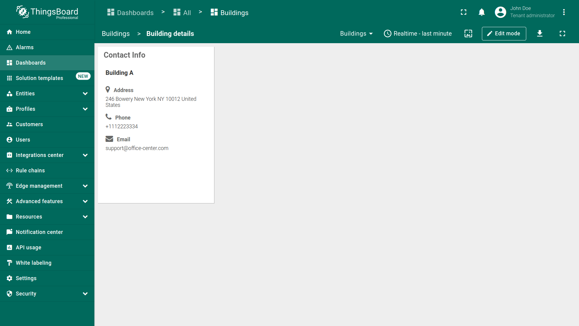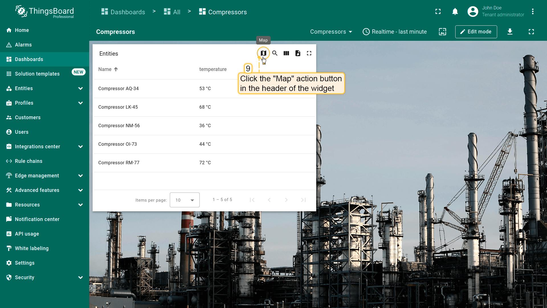 本指南以Entities table部件为例在编辑模式下配置actions。请在此了解如何将Entity table部件添加到dashboard。