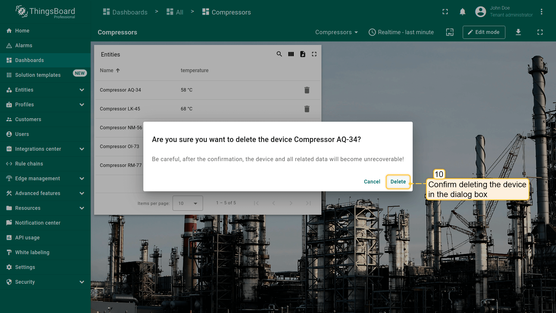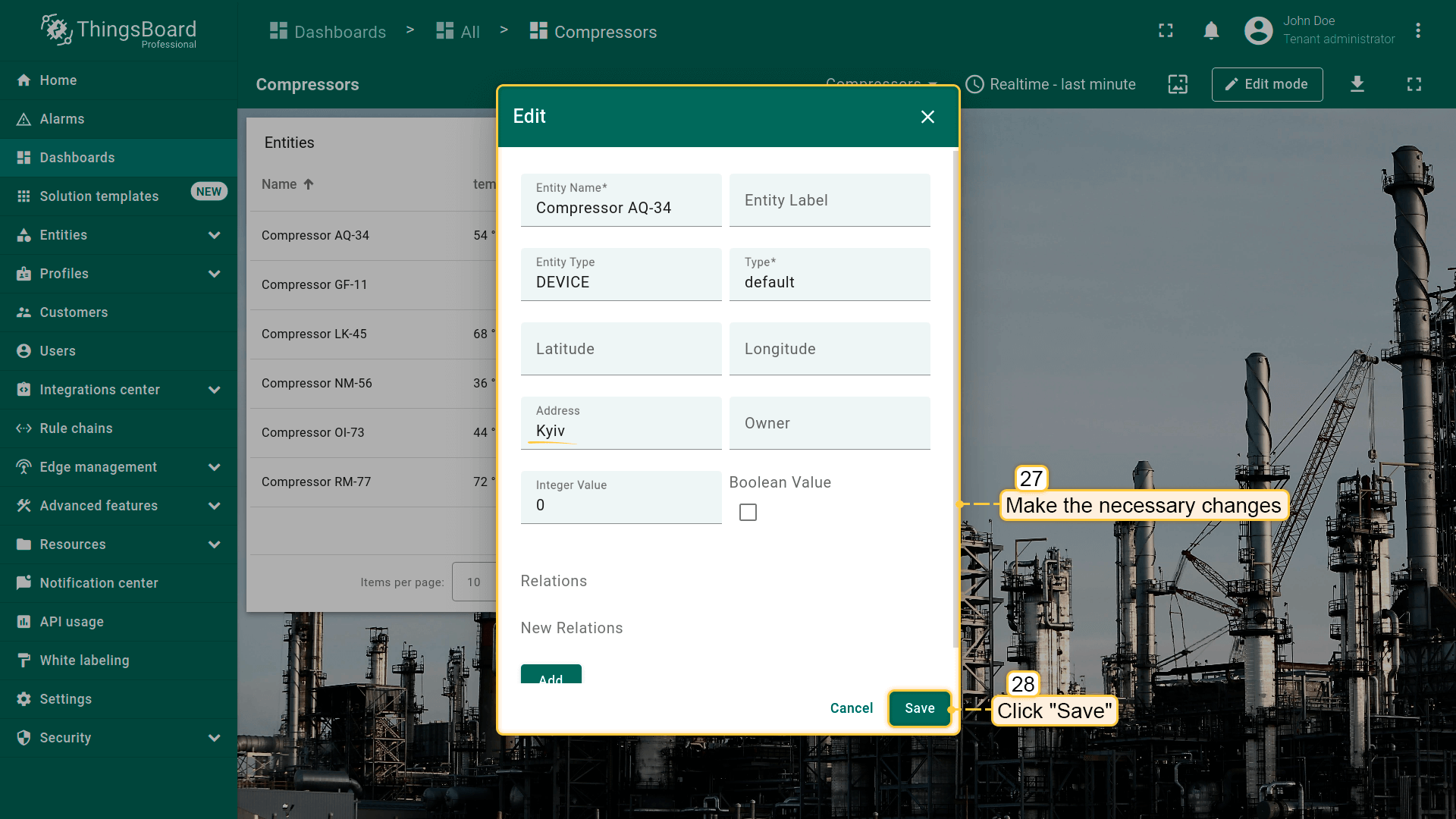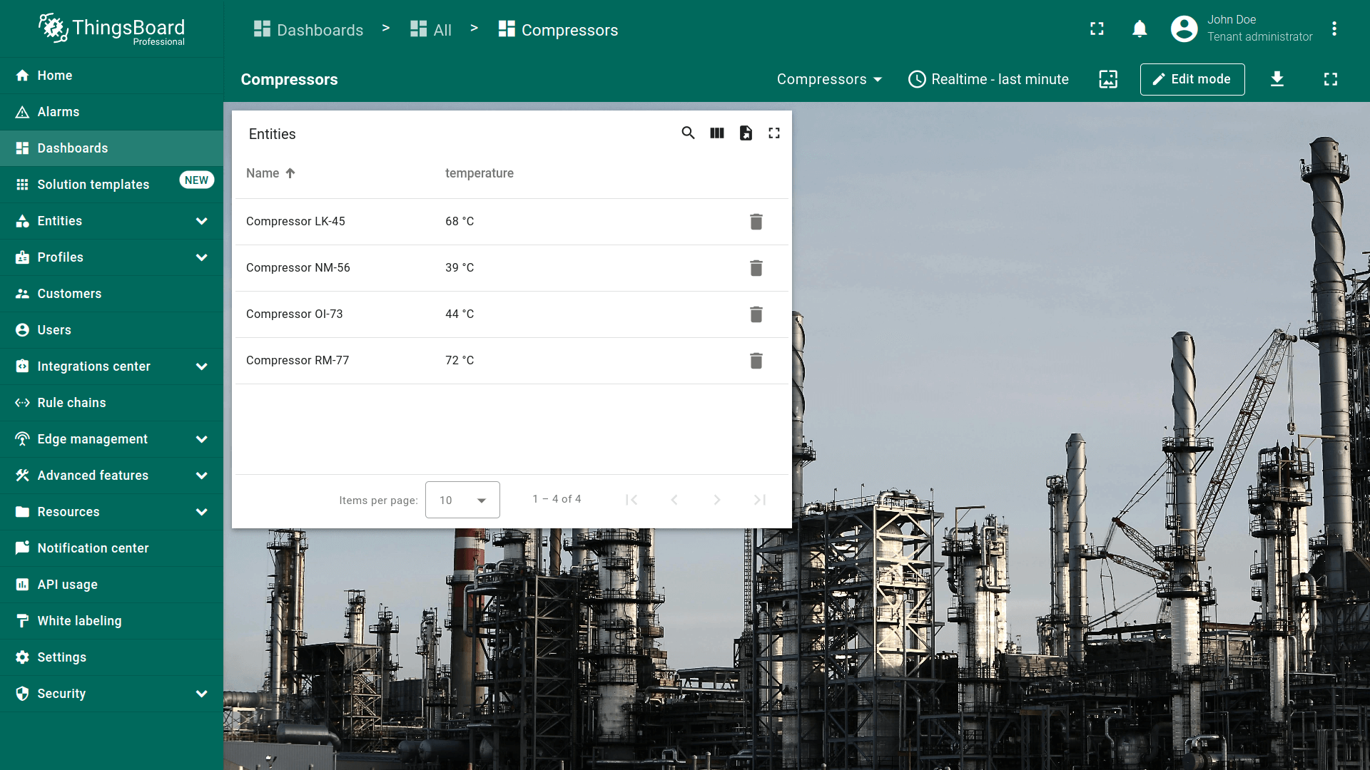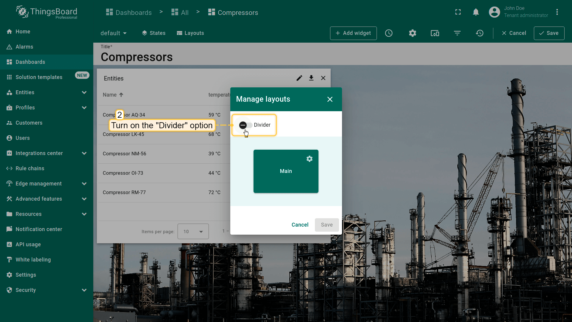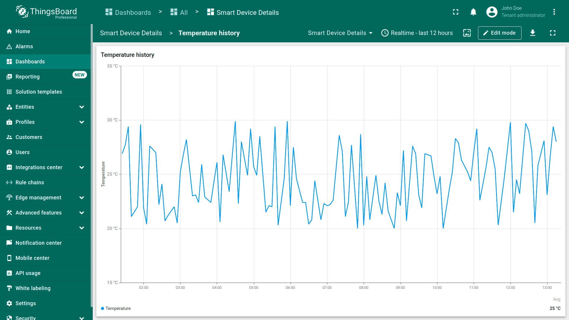 - Replace the label of the "temperature" key with ${entityName}. Then, click "Add" to add new widget on the dashboard;