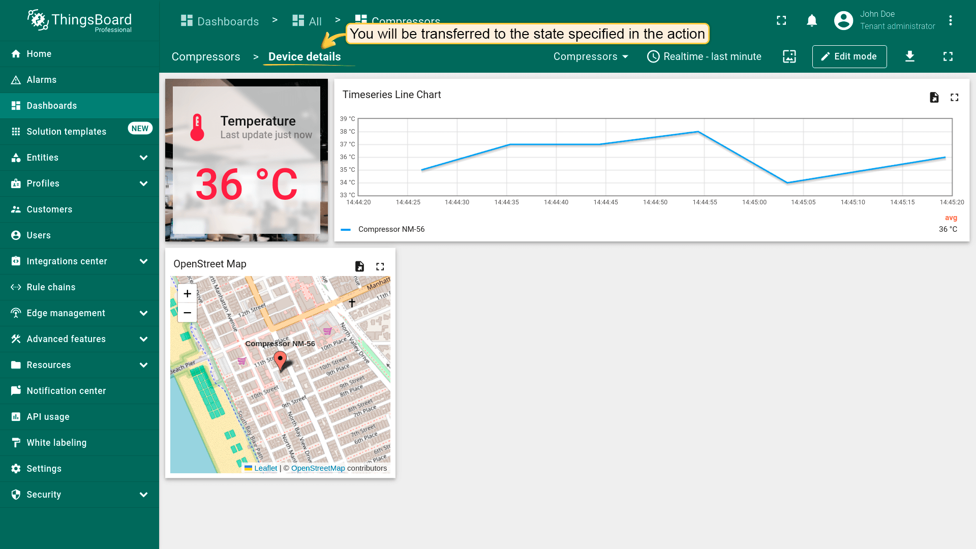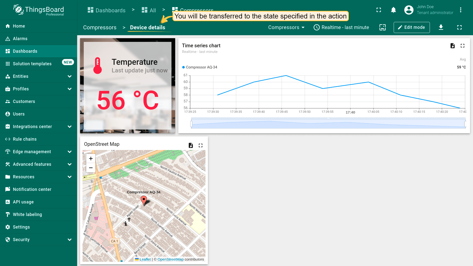 该action类型用于更新当前所在的dashboard。 在使用dashboard时可实时查看特定设备/资产的详细信息。 此类型最常用于Chart部件,便于更精确查看详情。